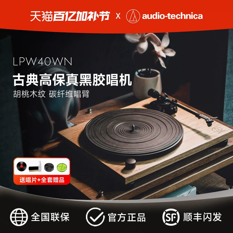 铁三角AT-LPW40WN胡桃木黑胶唱片机复古留声机古典唱机黑胶唱机