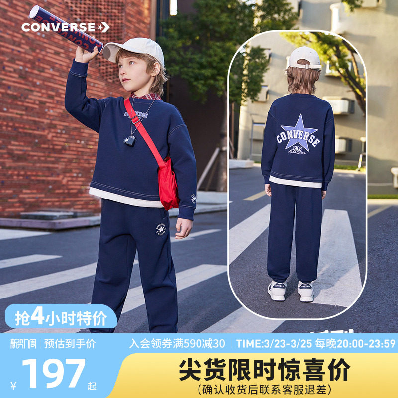 匡威童装男童套装2026春季新款长袖T恤长裤两件套复古英伦风休闲