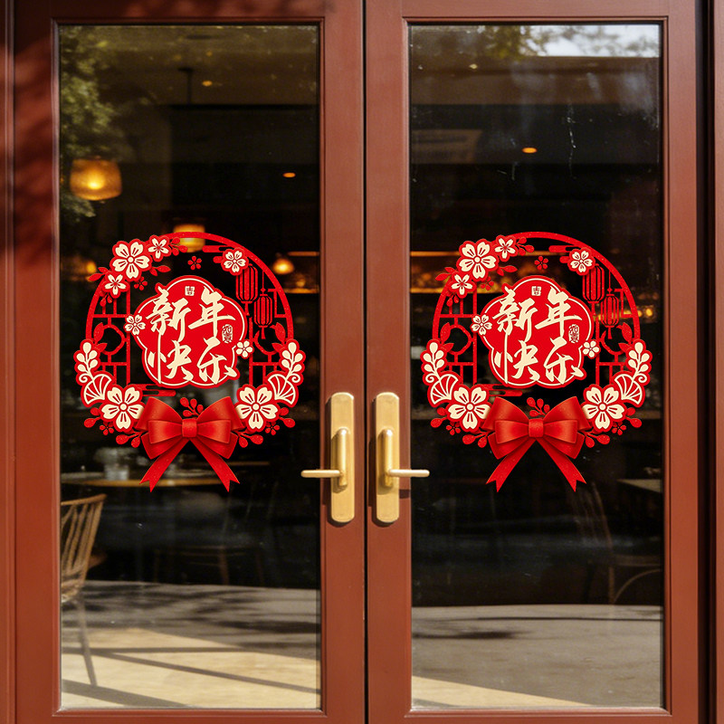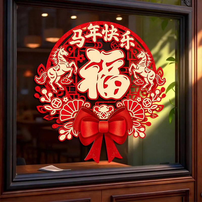 2026新年窗花马年装饰新款玻璃门贴纸静电橱窗贴春节氛围布置贴画