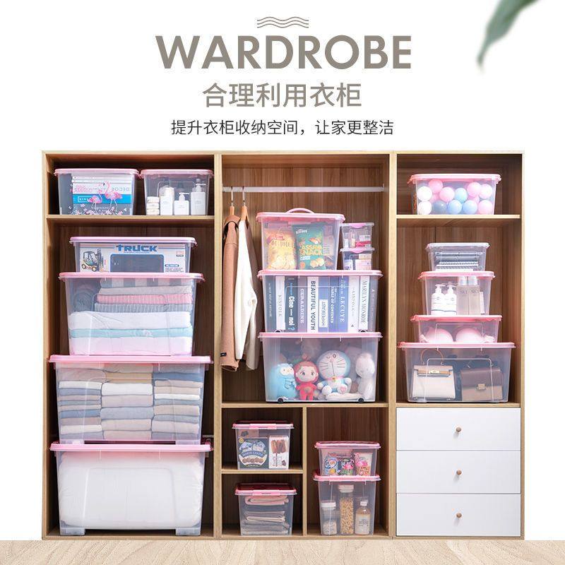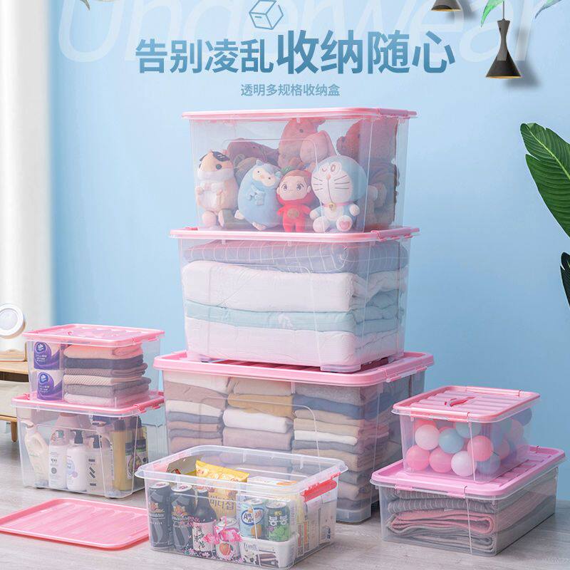 收纳箱大号透明衣服整理箱家用积木零食儿童玩具学生装书储物箱
