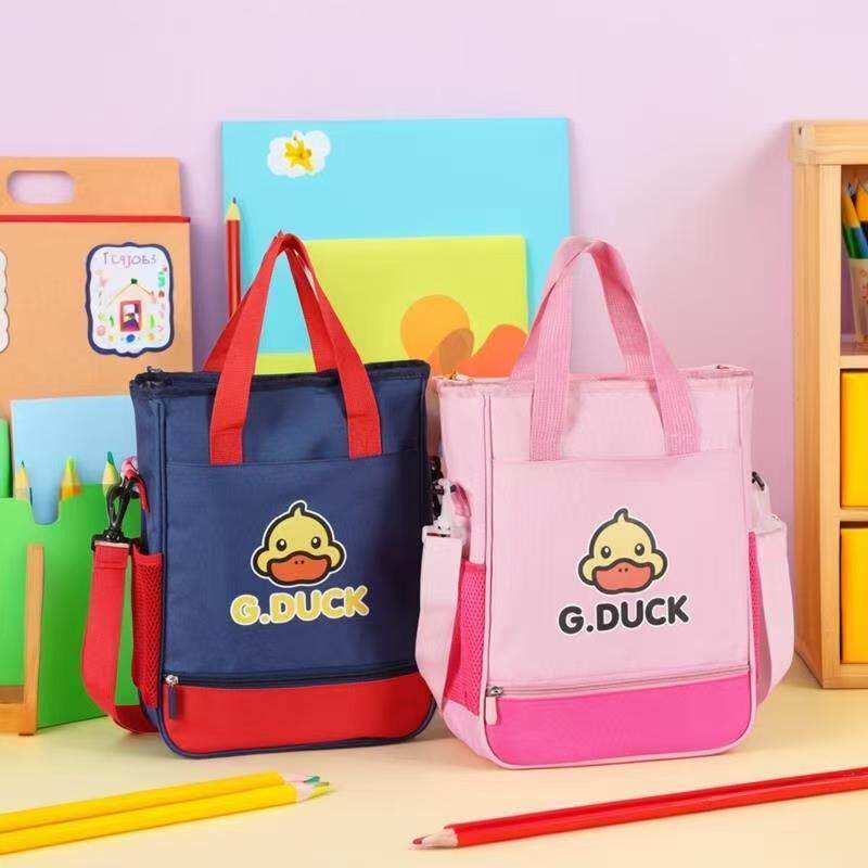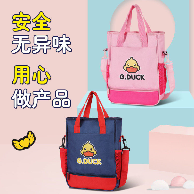 小黄鸭补习袋手提袋拎书袋小学生用女孩书包拉链文件袋帆布包美术袋男生作业试卷收纳袋子大容量补课包