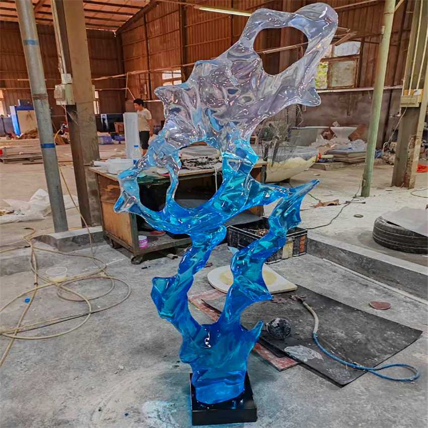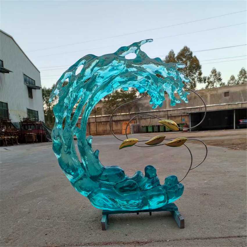 玻璃钢仿真海浪雕塑户外大型落地摆件抽象透明浪花装饰品摆件