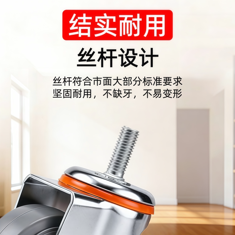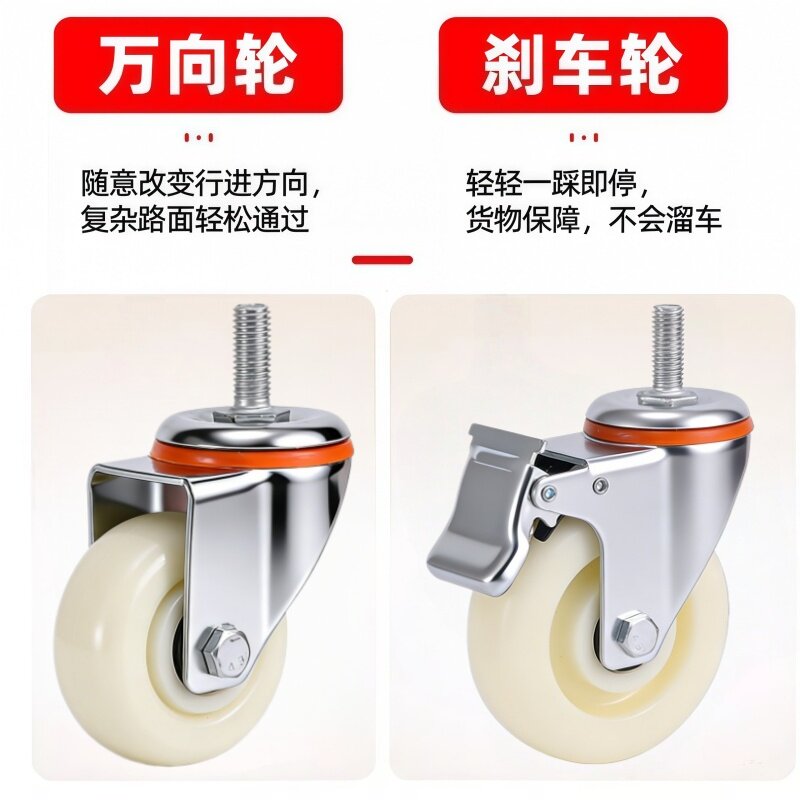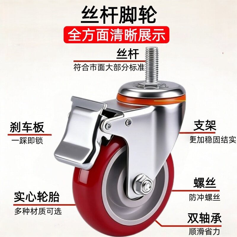丝杆脚轮静音3/4/5寸万向轮家具小轮子聚氨酯尼龙橡胶轮刹车轱辘