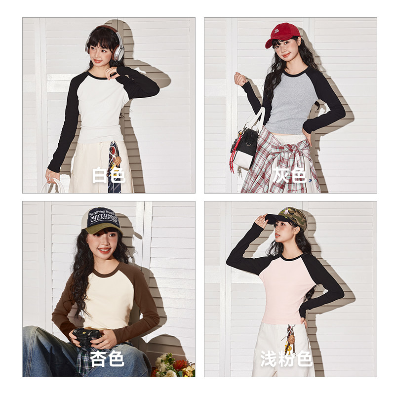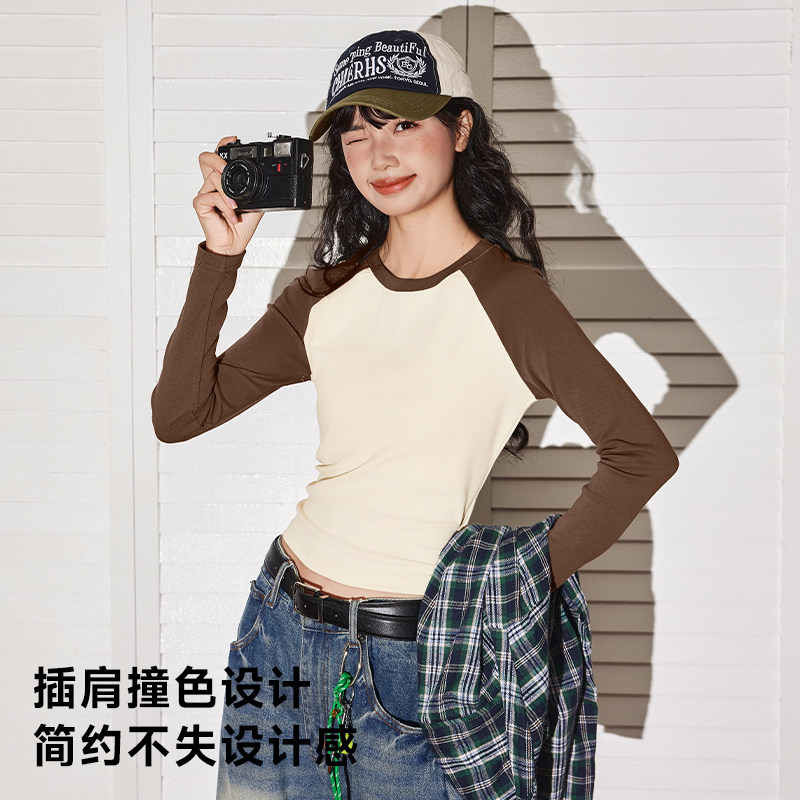 唐狮官方插肩长袖上衣女2026新款春秋款女士修身显瘦内搭t恤女VB