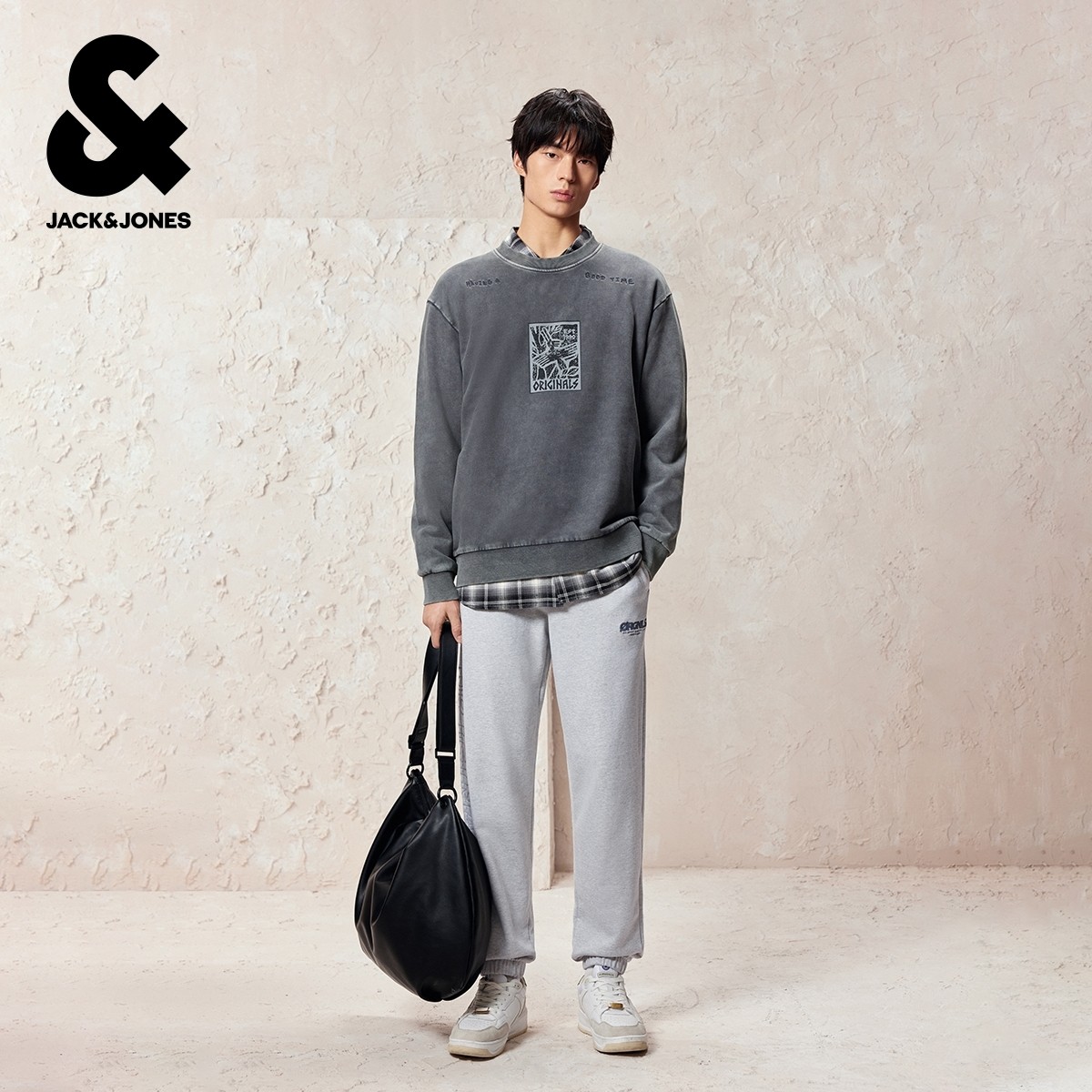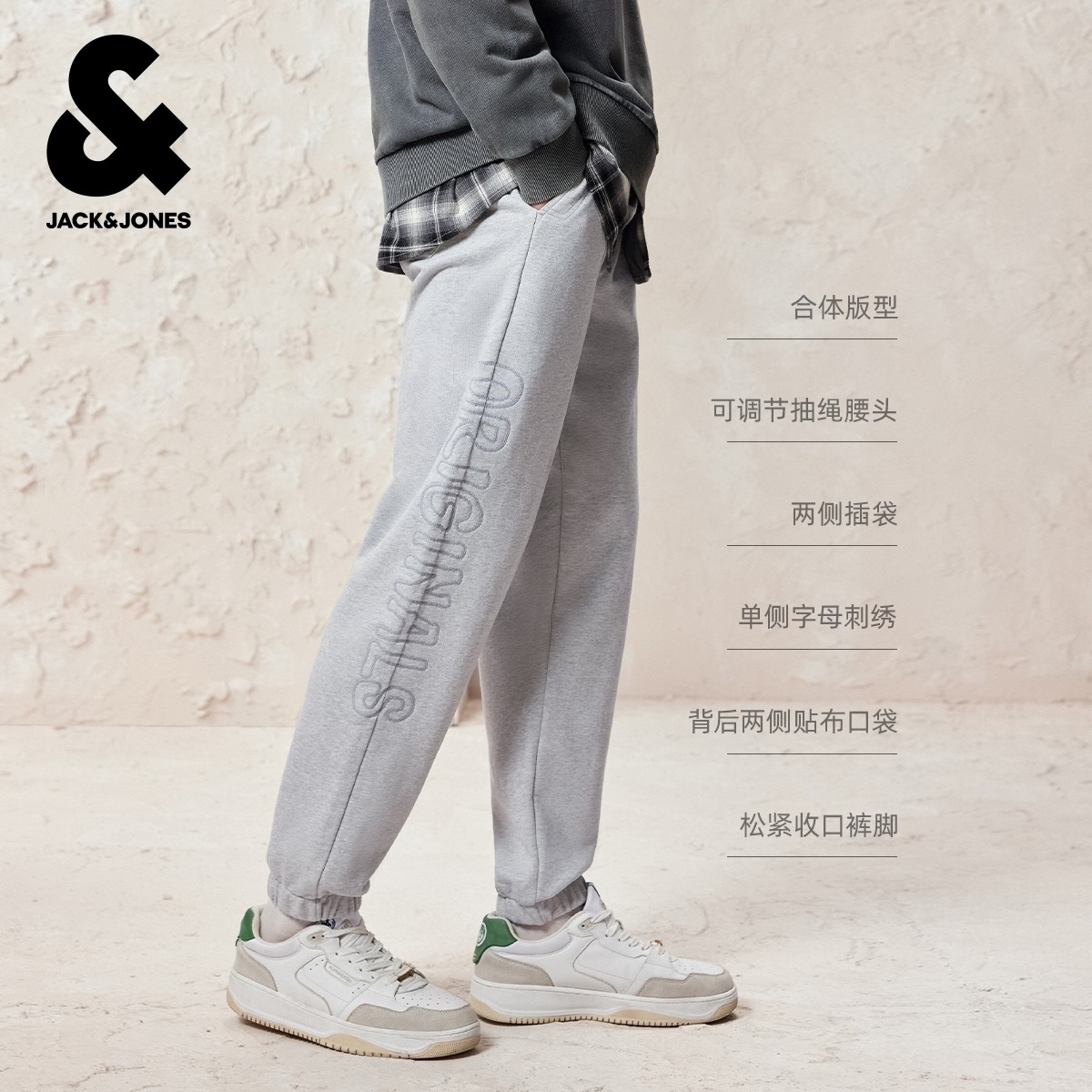 杰克琼斯男装秋季卫裤2025新品纯棉松紧腰字母刺绣百搭束脚裤裤子