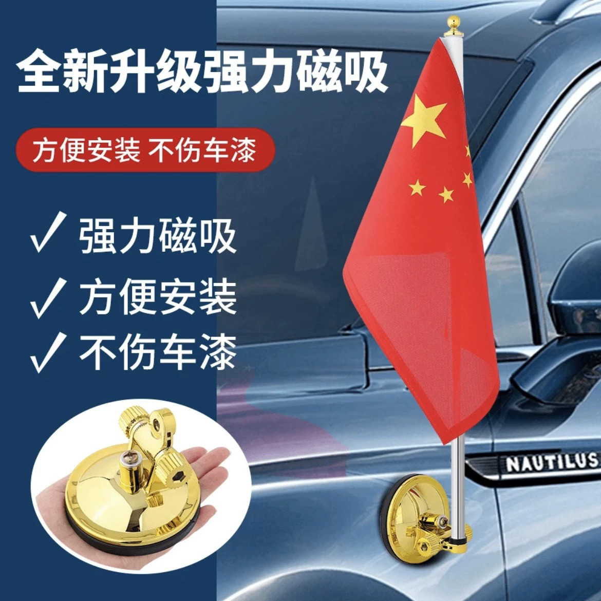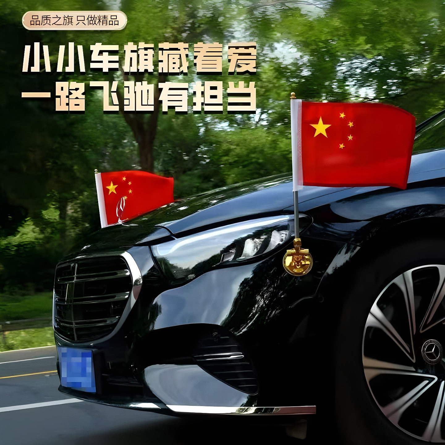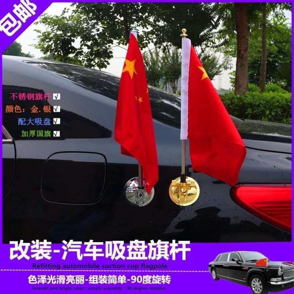 吸盘式车载五星红旗国庆装饰旗免打孔摩托车底座婚车饰迎宾旗