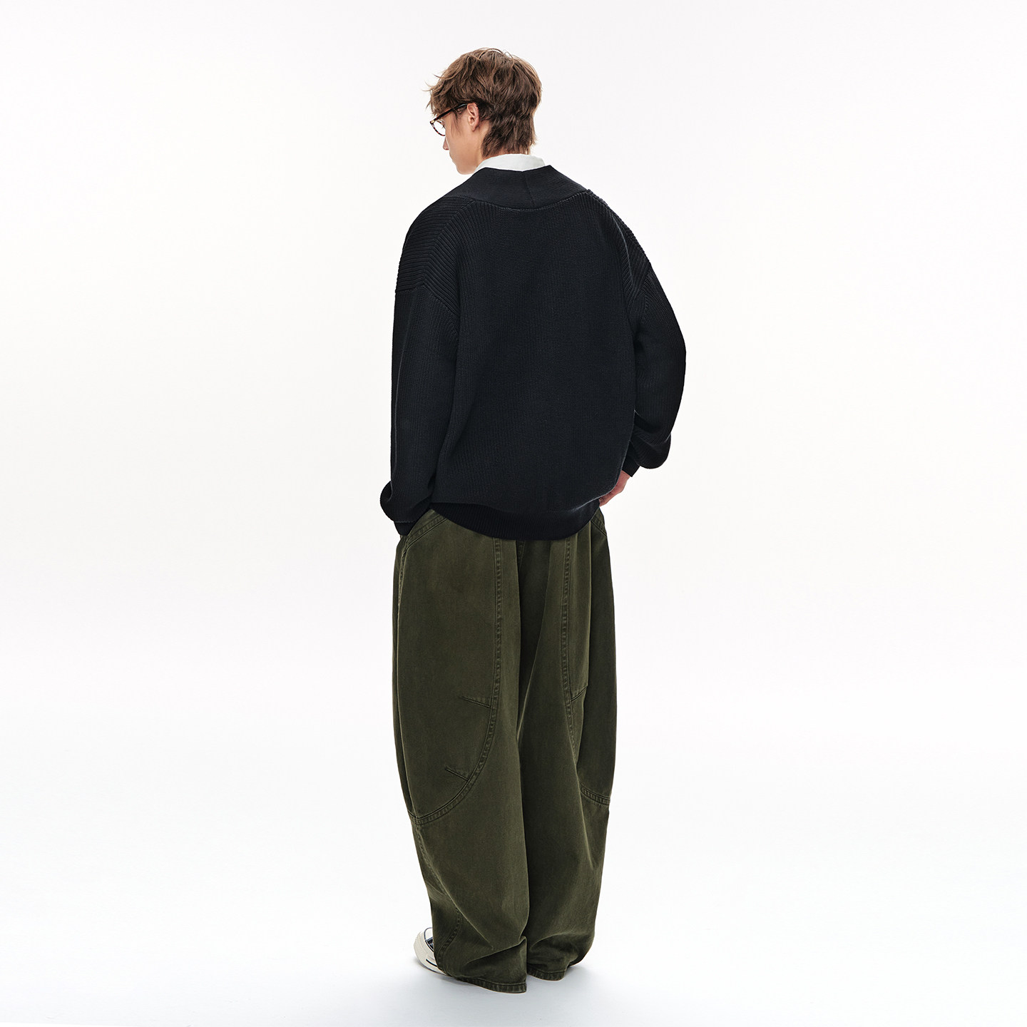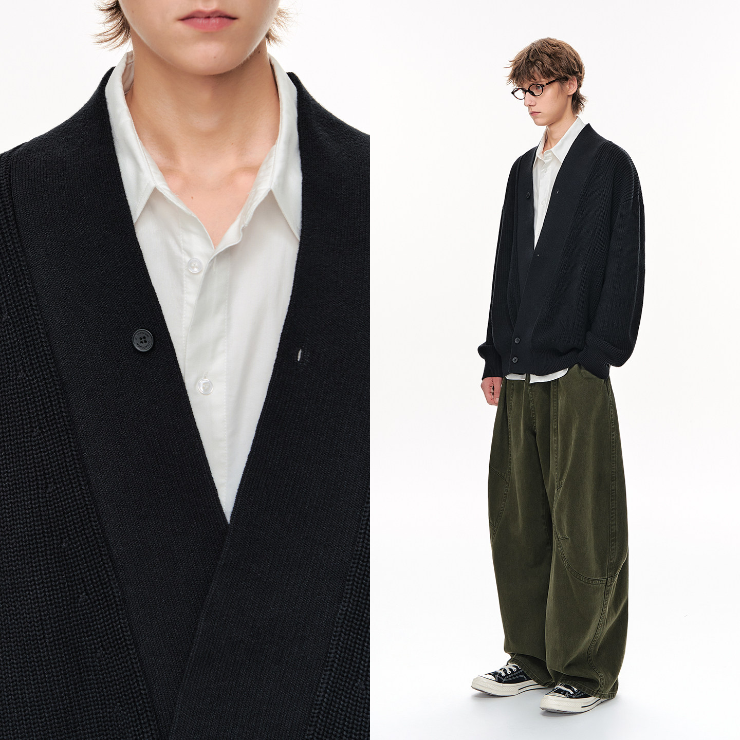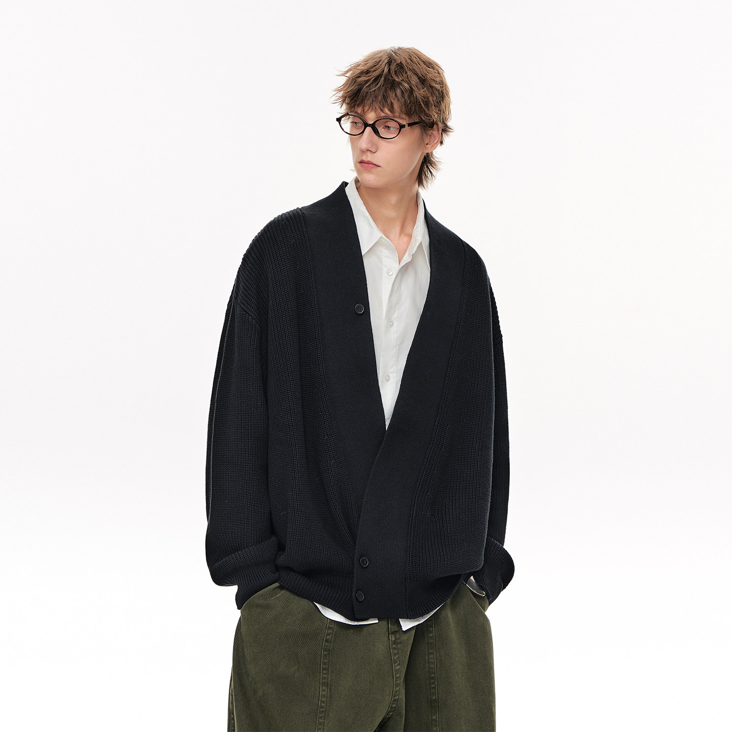 CLIMAX VISION不规则斜纽扣V领开衫道袍休闲宽松慵懒毛衣外套