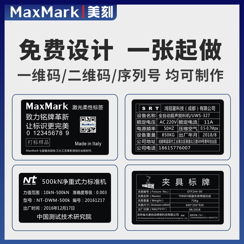 MaxMark美刻铭牌定制机械铭牌设备铭牌不锈钢铭牌出厂铭牌易碎纸