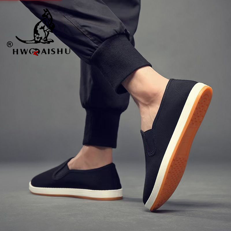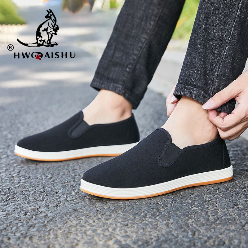男款春夏休闲老北京布鞋中老年爸爸鞋一脚蹬懒人鞋黑色帆布