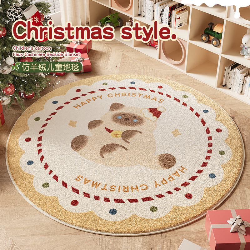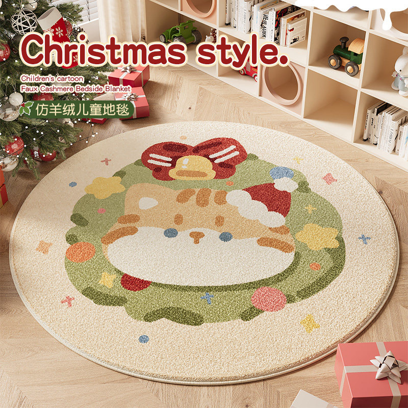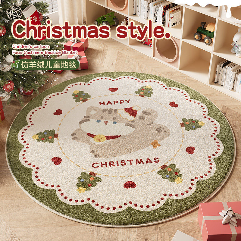 圆形圣诞树地毯圣诞风卡通地垫喜庆节日氛围红色脚垫卧室装饰布置