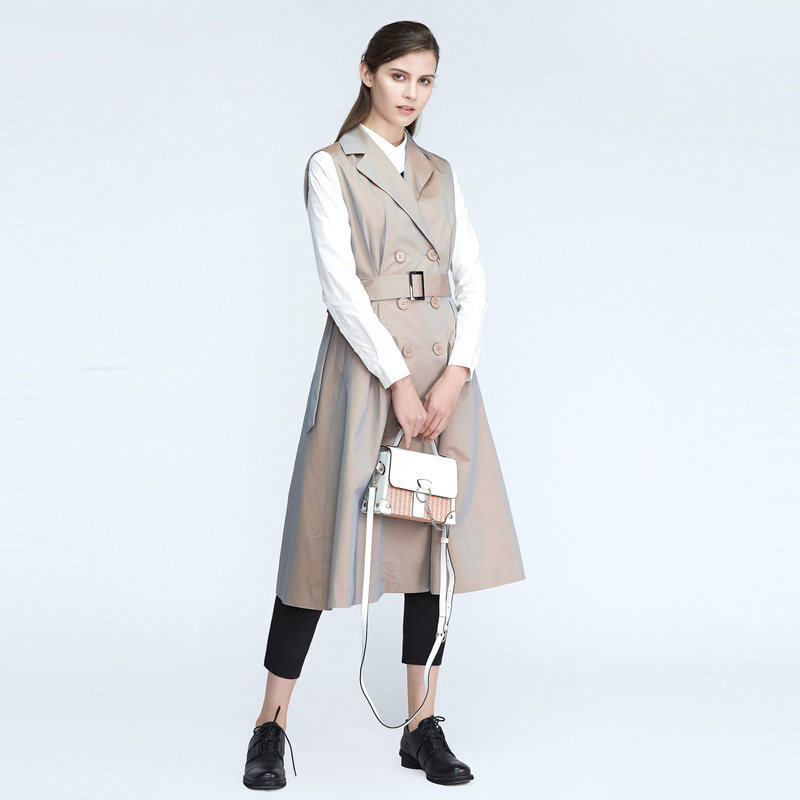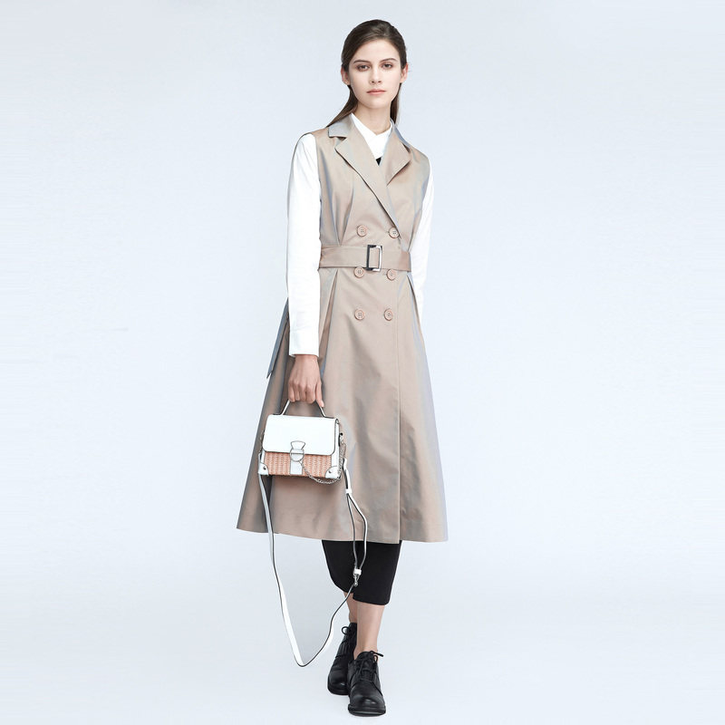 S·DEER圣迪奥女装春季新简约西装领双排扣收腰长款马甲S21181601
