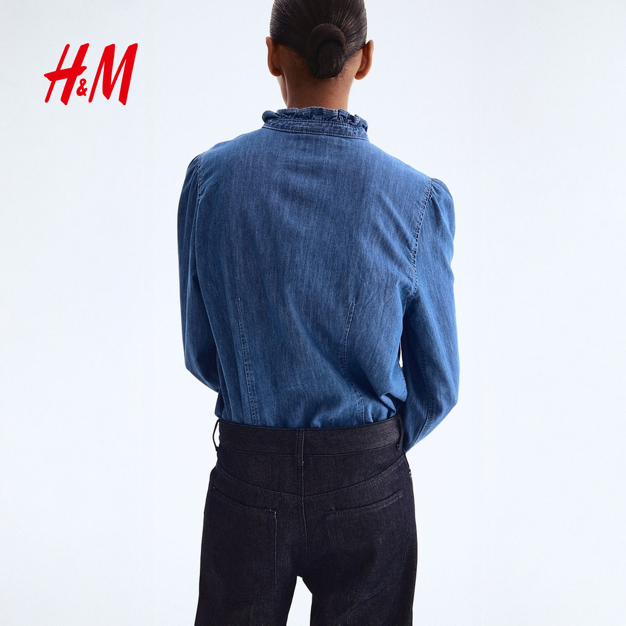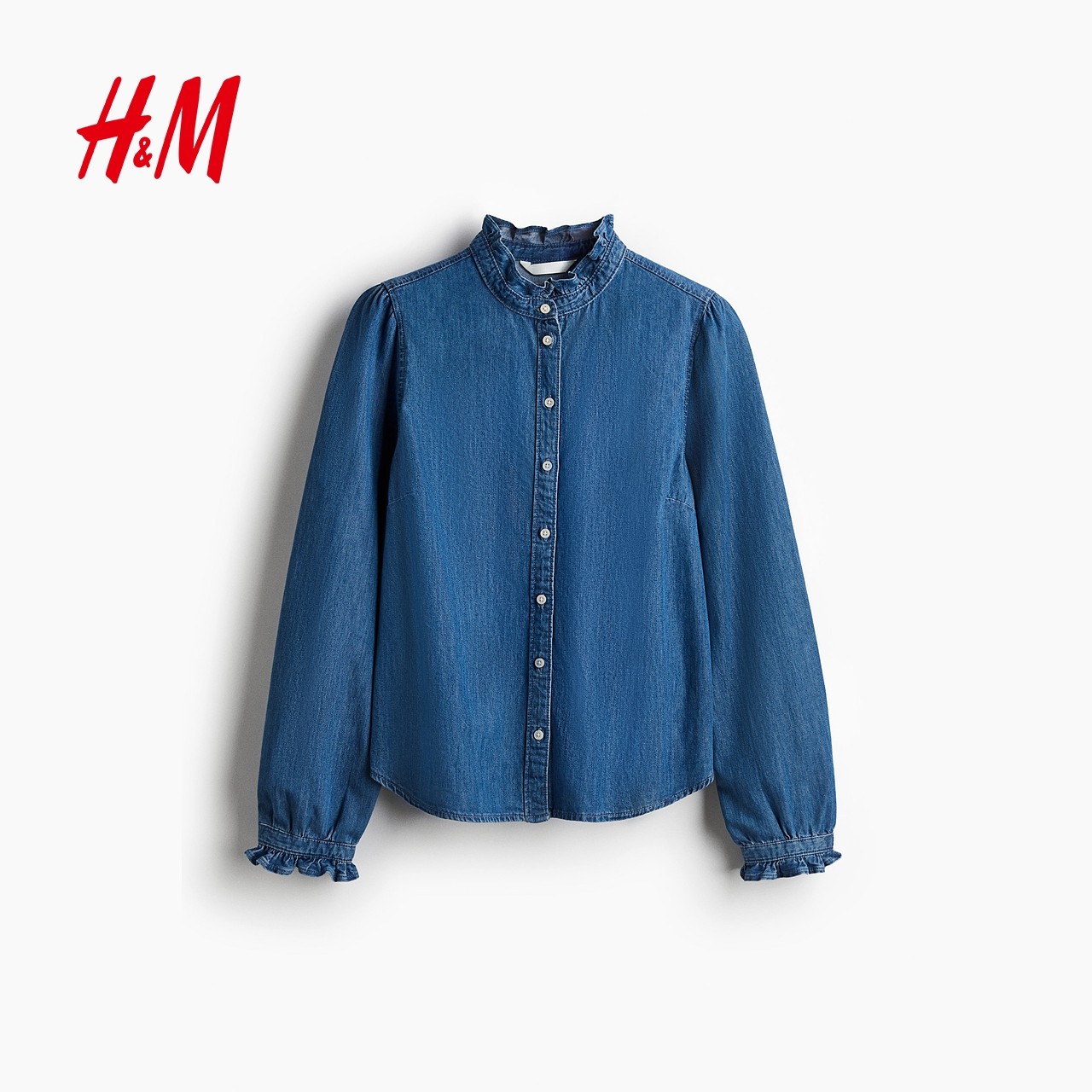 HM女装衬衫2025年冬季新款长袖潮流时尚气质褶边牛仔上衣1260356