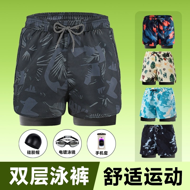 2025新款男士双层防尴尬温泉海边度假专业大码遮肉泳衣游泳沙滩裤