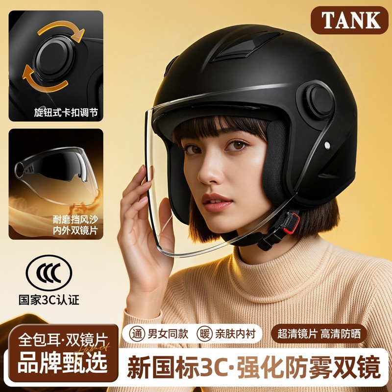 3c认证电动车头盔女士电瓶摩托半盔男四季通用骑行冬季保暖安全帽