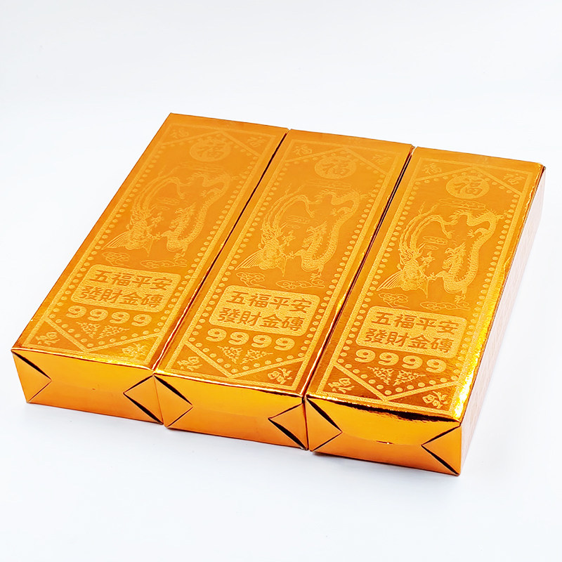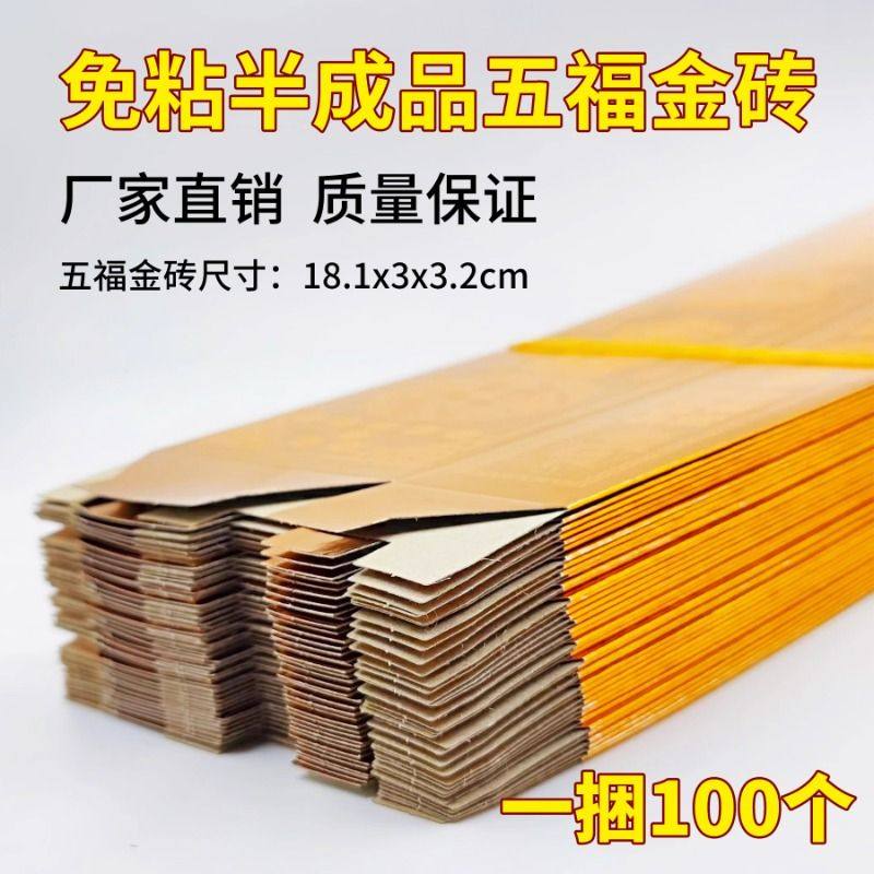大号金条金砖半成品硬卡纸加厚免沾仿真五福金砖帝王金砖免折叠大小金条五福帝王寒衣节专用批发直销