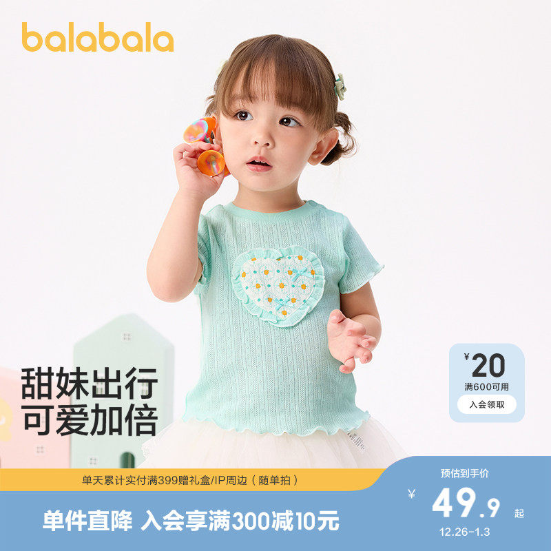 巴拉巴拉宝宝短袖t恤婴儿女童上衣2025新款夏装甜美休闲百搭上衣
