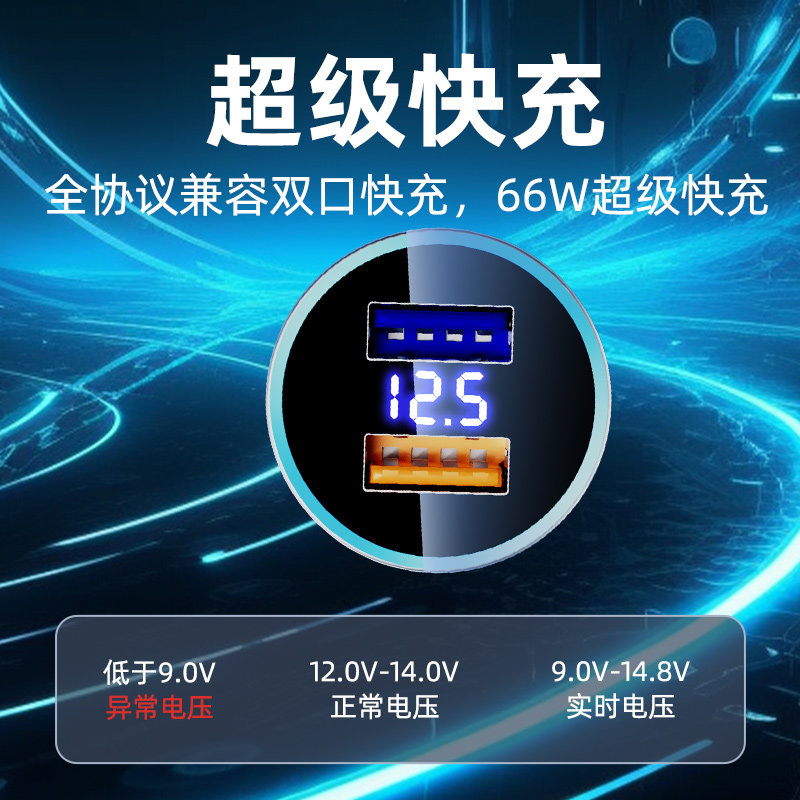 66w车载充电器双口USB超级快充汽车用点烟器转换插头苹果华为通用