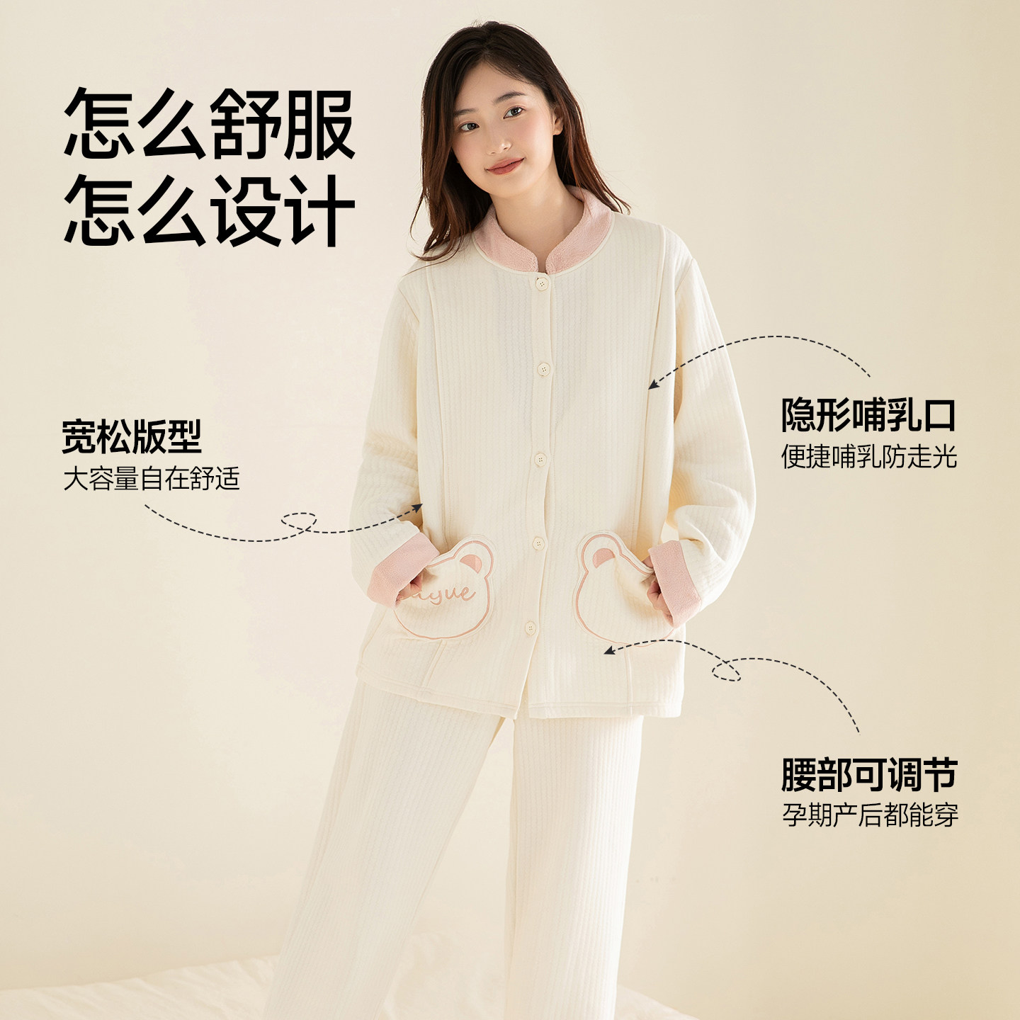 月子服孕妇冬季可调节腰带加厚睡衣三层纯棉产妇喂奶哺乳衣家居服