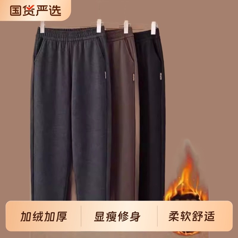 中老年人冬季直筒长裤子女奶奶装新款妈妈秋冬款加绒加厚休闲裤