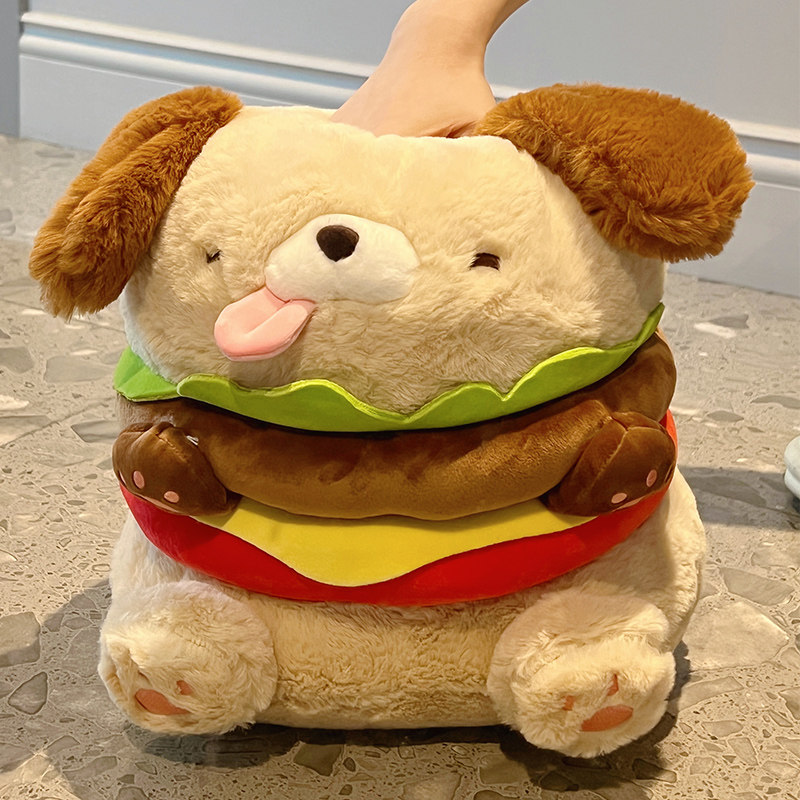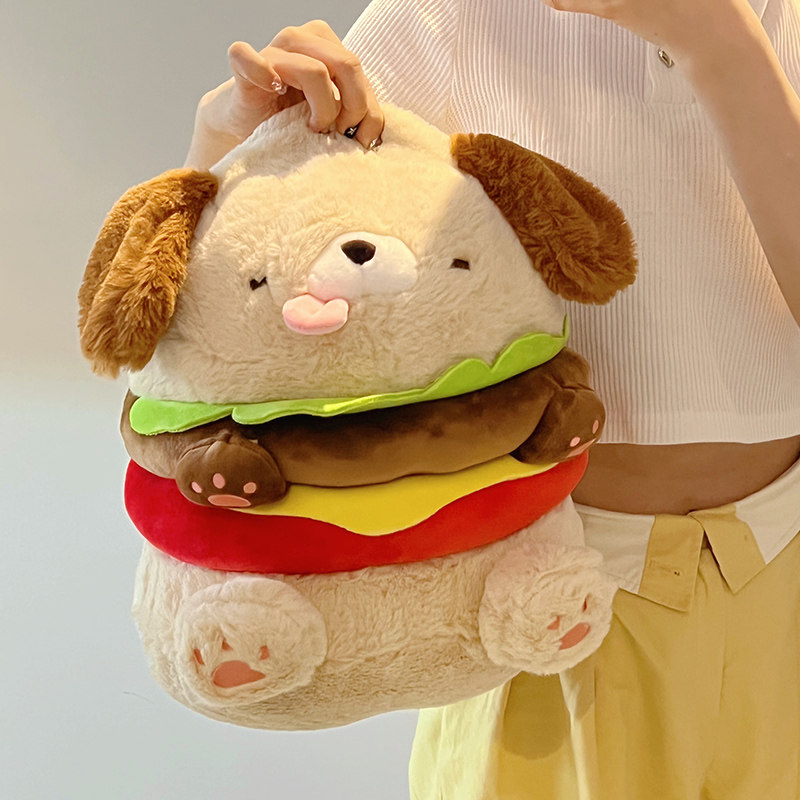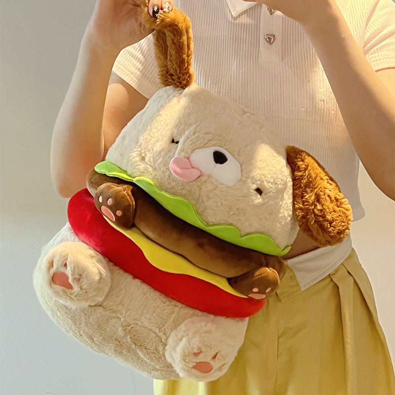 汉堡狗玩偶小狗公仔牀上毛绒玩具女孩布娃娃抱着睡觉抱枕女生礼物