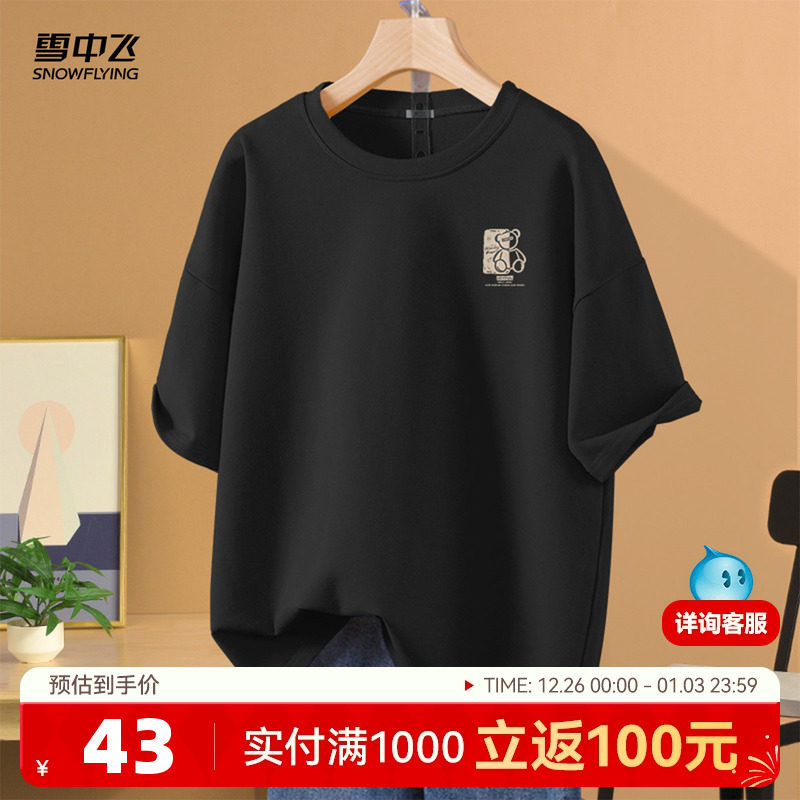 雪中飞短袖女t恤2025新款夏季薄款圆领打底衫黑色男女同款半袖PC