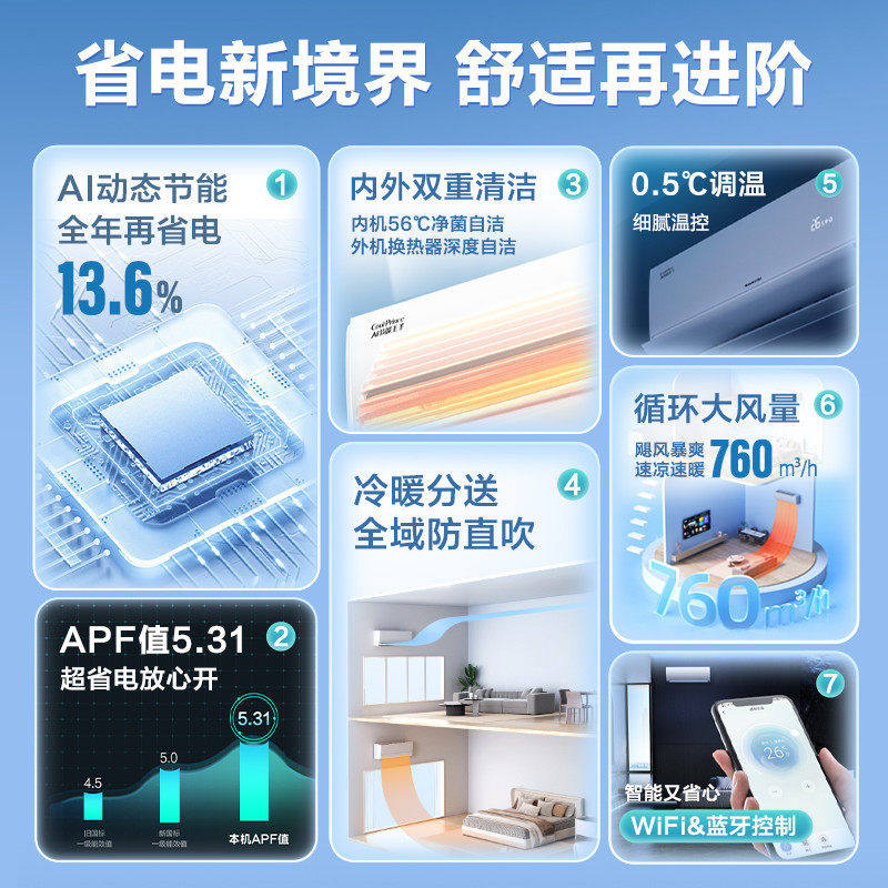 0.5℃控温 防直吹 Ai芯片开机既省电