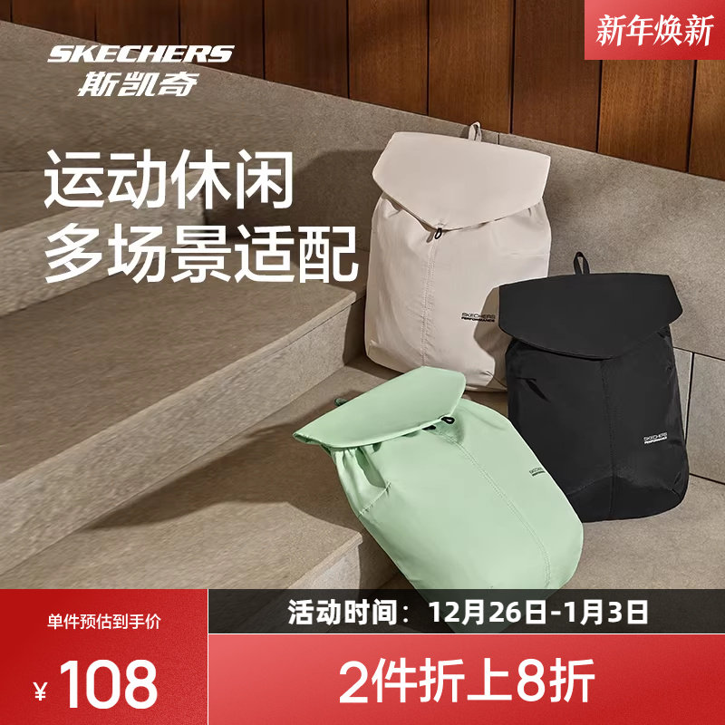 斯凯奇运动双肩背包2025新品男女同款轻软肤感透气简约包包