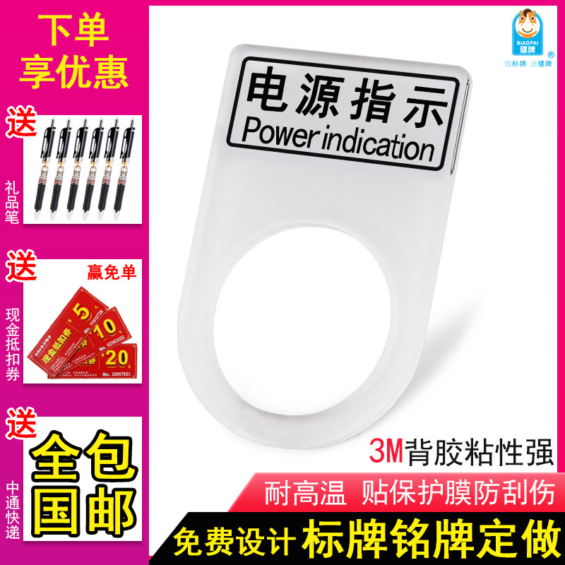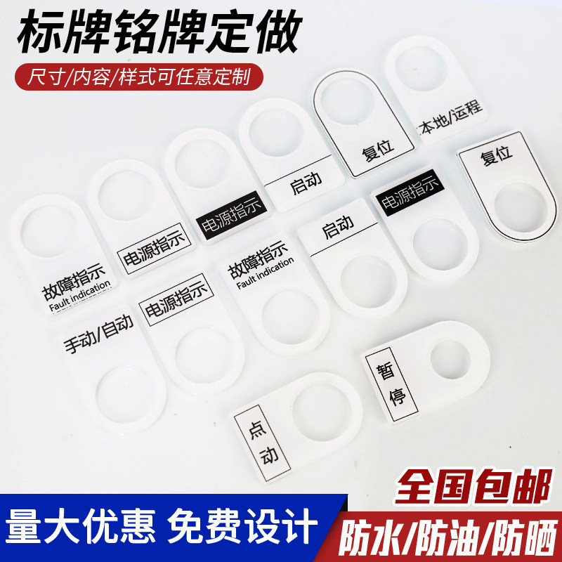 亚克力按钮标识牌22mm定做配电柜配电箱电箱电柜机柜机器机械设备铭牌开关指示灯电气标牌电器控制柜标示框