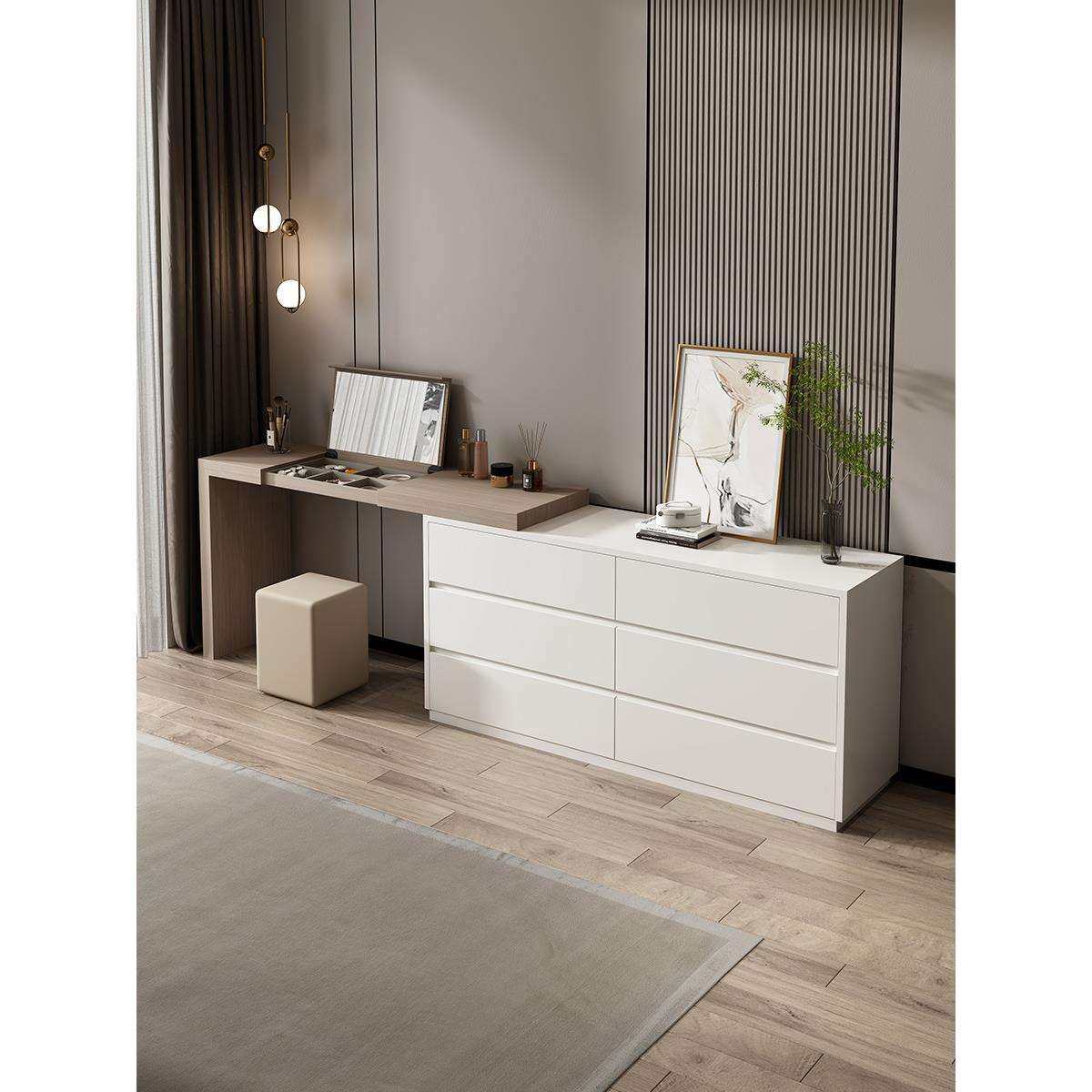 暖风现代简约卧室梳妆台收纳柜组合一体翻盖镜多功能化妆桌书桌