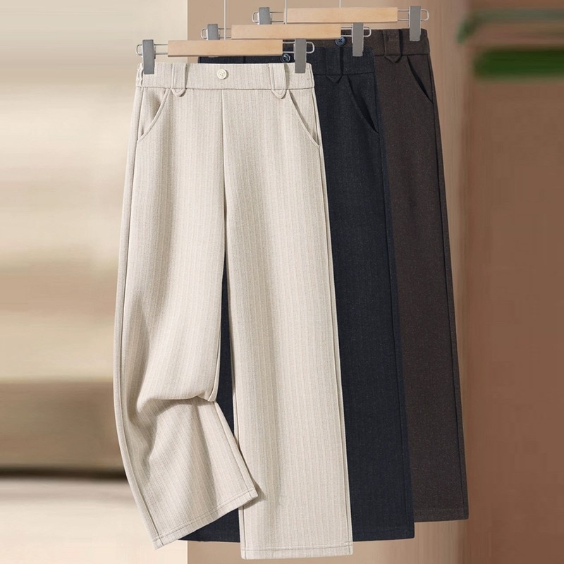 中年妈妈秋冬加绒加厚直筒裤时尚中老年人女款休闲裤宽松冬季裤子