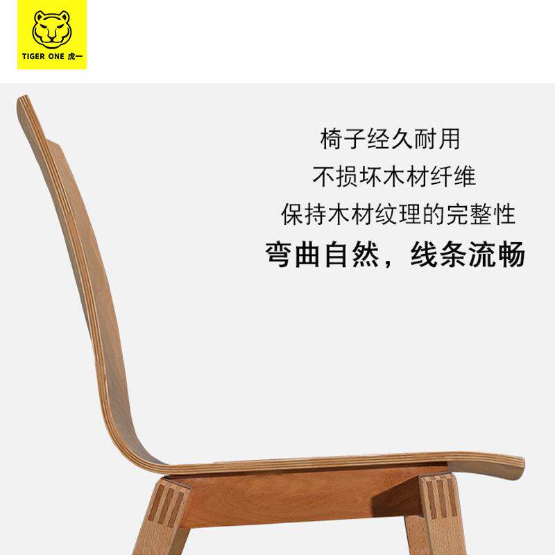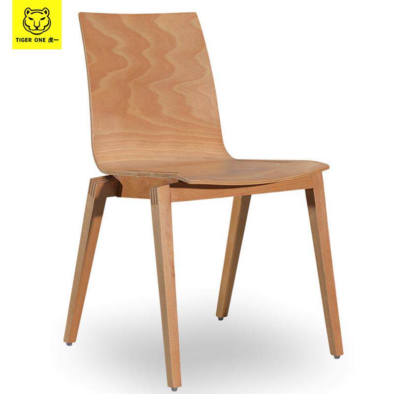 虎一家具北欧家用实木餐椅办公司食堂餐饮店靠背椅弯板曲木白蜡木