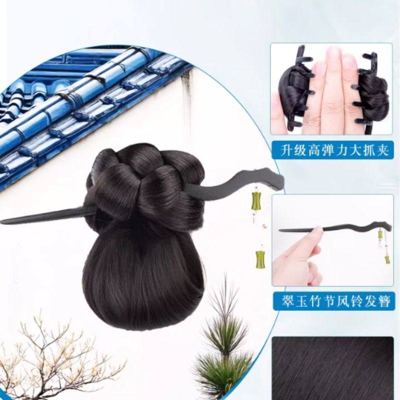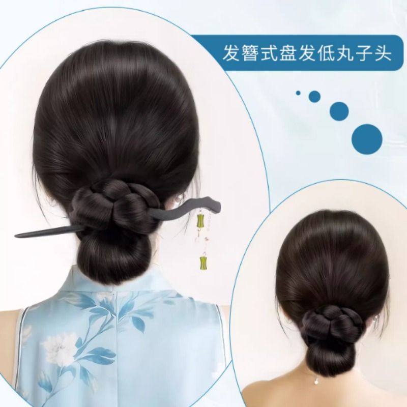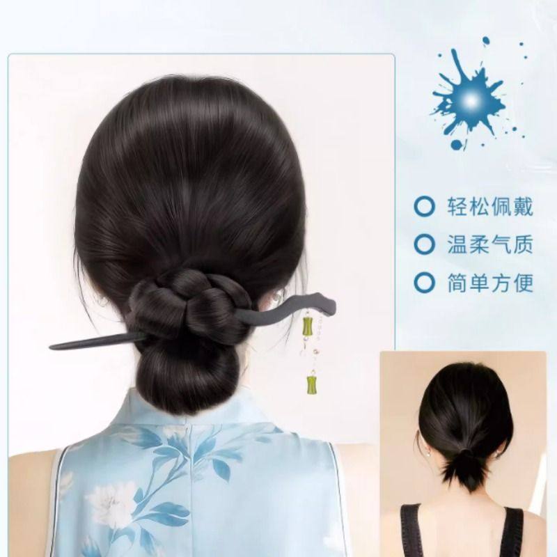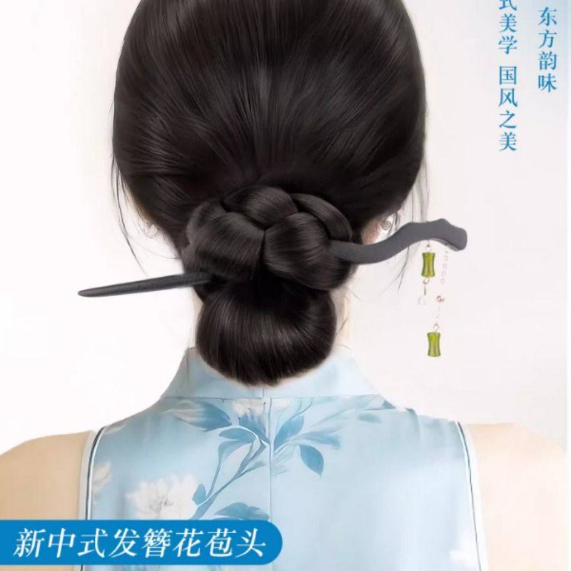 丸子头假发抓夹发簪低扎盘发发圈花苞头古风旗袍新中式假发髻发包