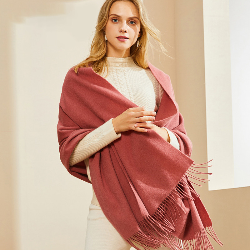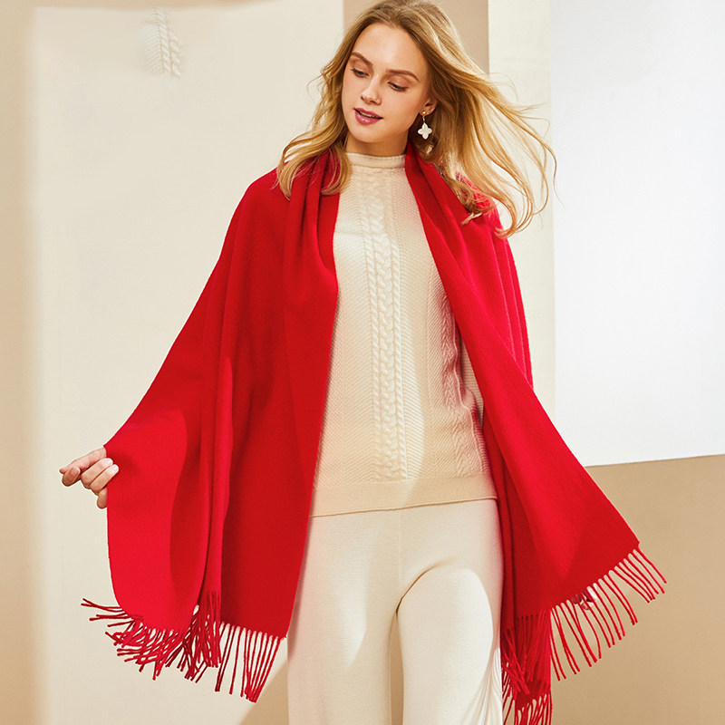 恒源祥纯羊毛围巾女士秋冬季加大红色百搭保暖披肩两用长款加厚男