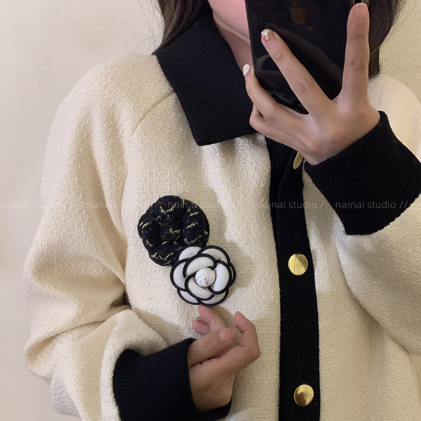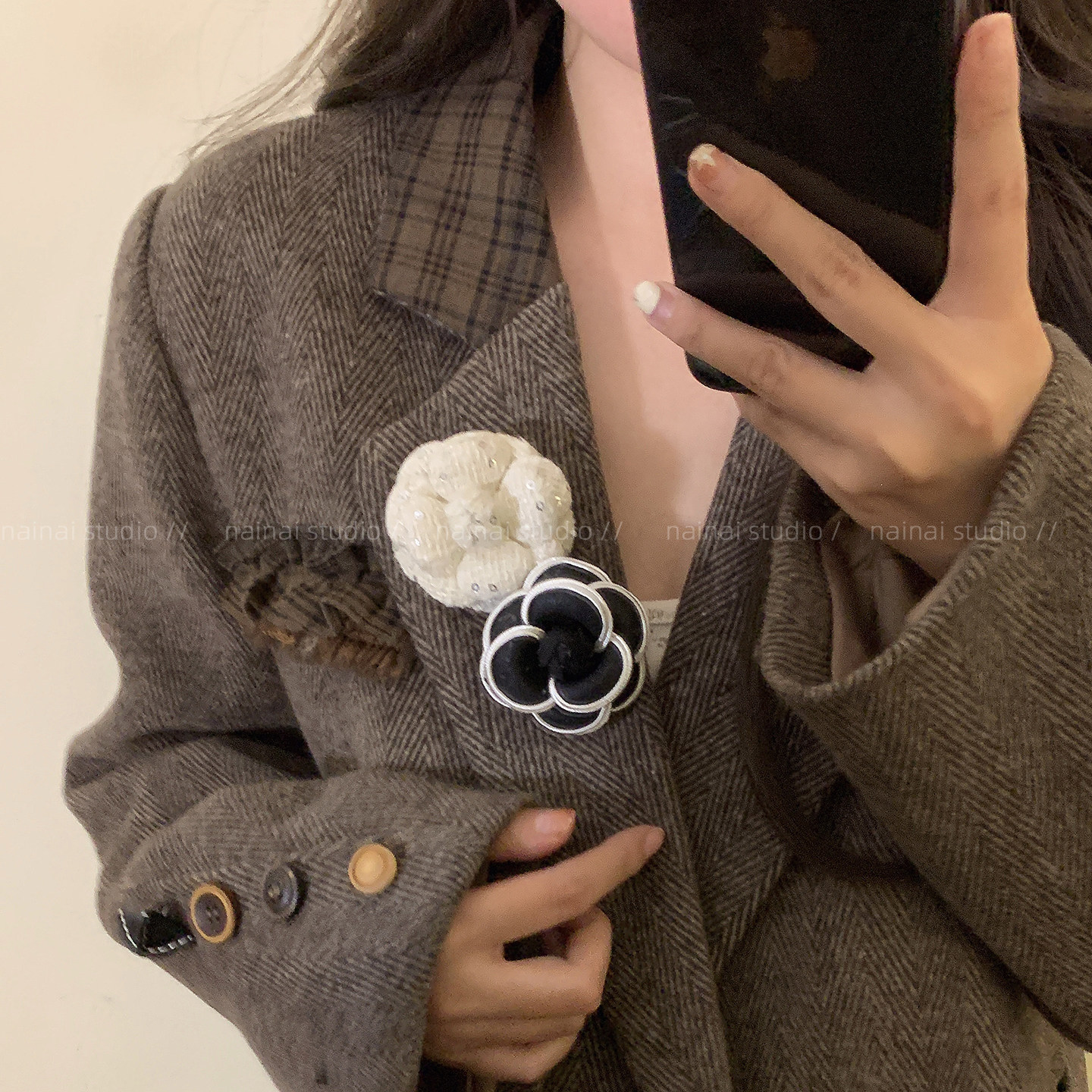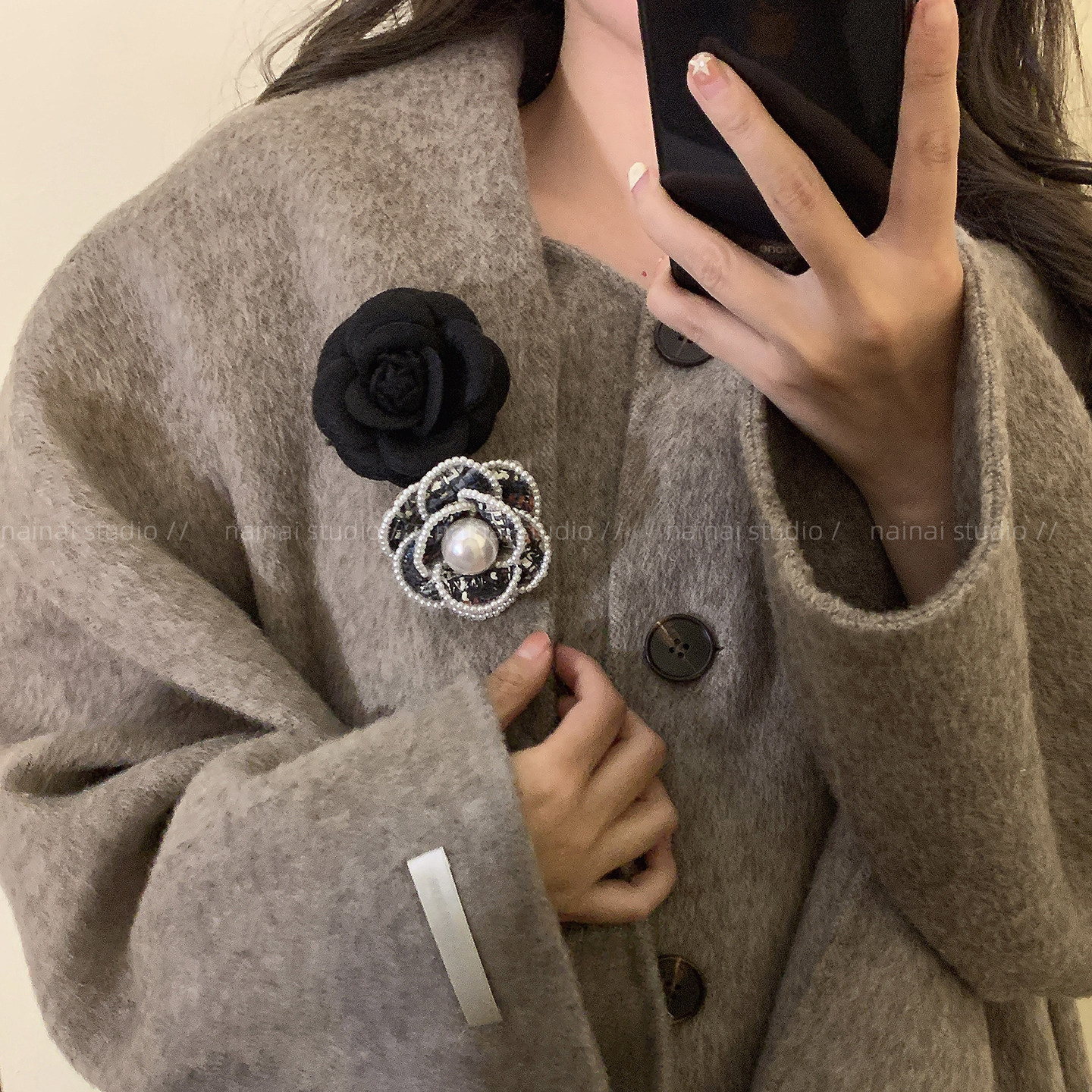 黑色山茶花胸针~小香风复古法式高级感玫瑰花大衣胸花别针配饰女