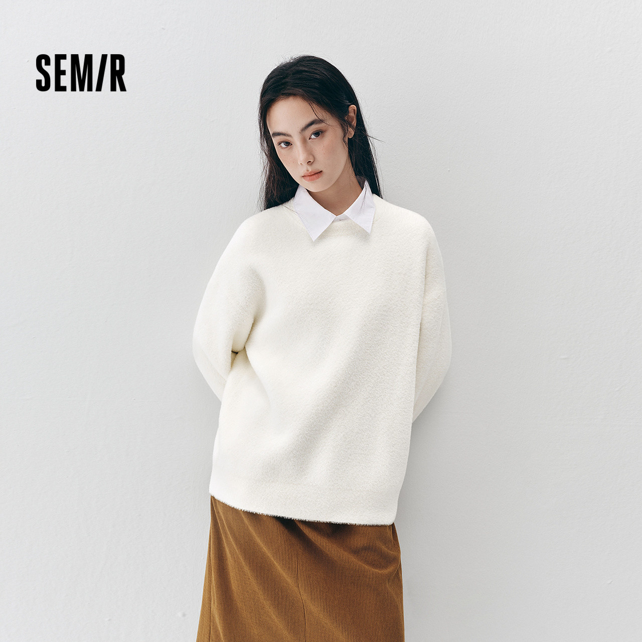 商场同款|森马毛衣女冬季仿貂毛外套2025新款气质卫衣慵懒套头衫