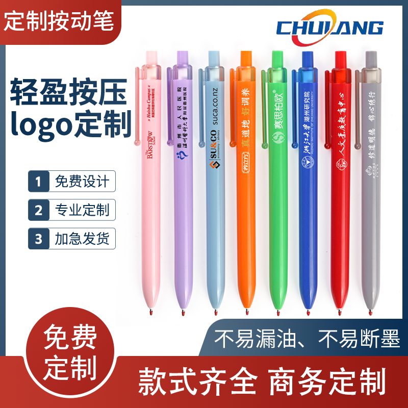 【免定制费】100支广告笔定做定制企业logo定制按动中性笔一体式笔杆新款中性笔 简约按压式黑色笔