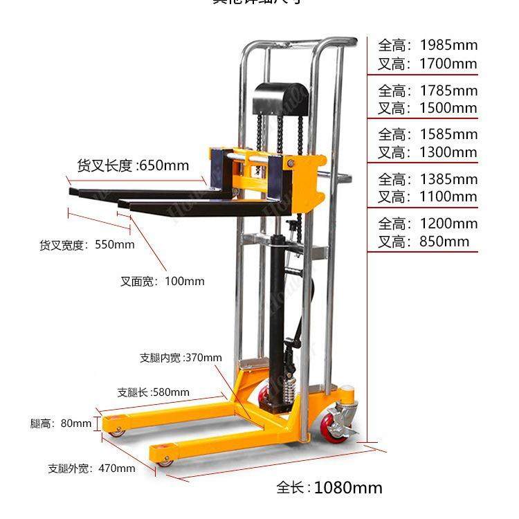 好拉SDDJS1700小巧手动轻便堆高车迷你升高车轻型行李平台车