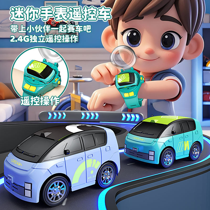 手表遥控小汽车迷你合金赛车男电动儿童玩具车生日礼物小车感应