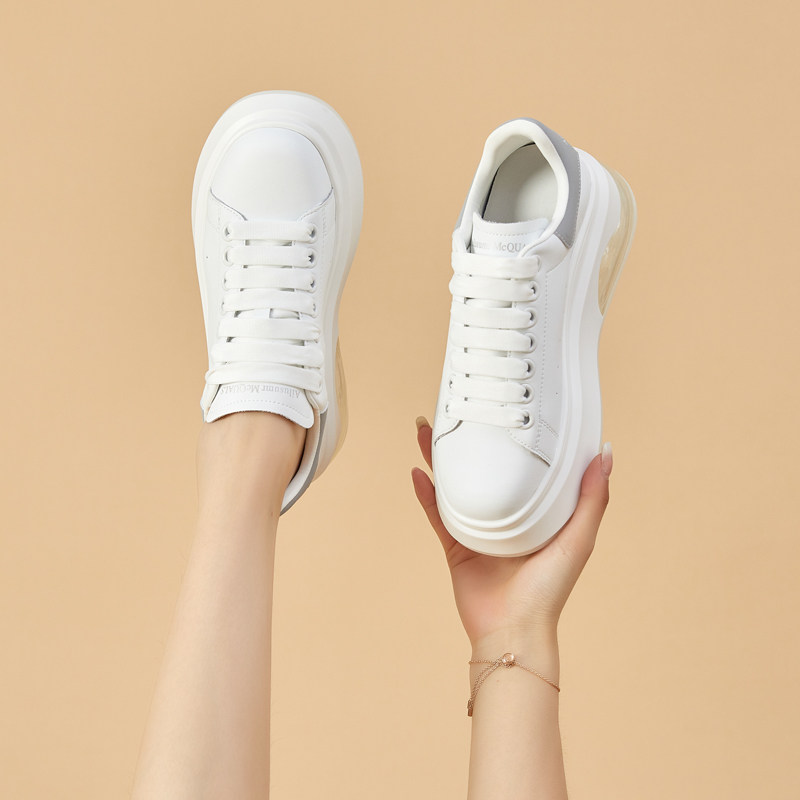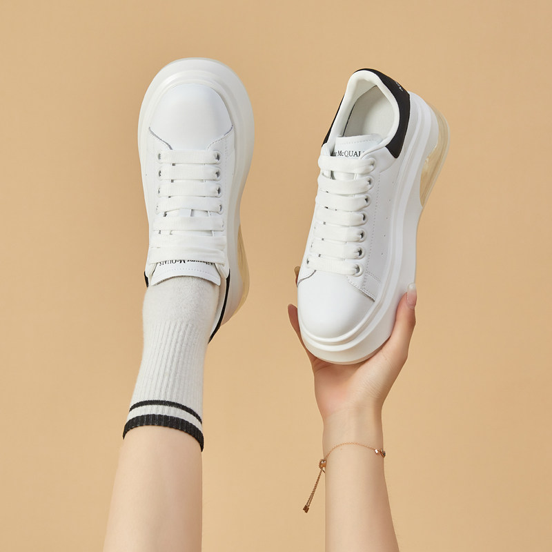 真皮厚底小白鞋女2026春季新款小个子增高6CM白色休闲鞋松糕鞋女