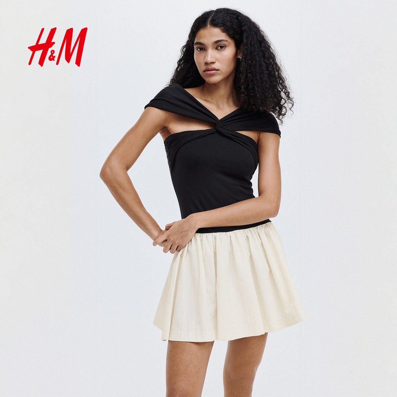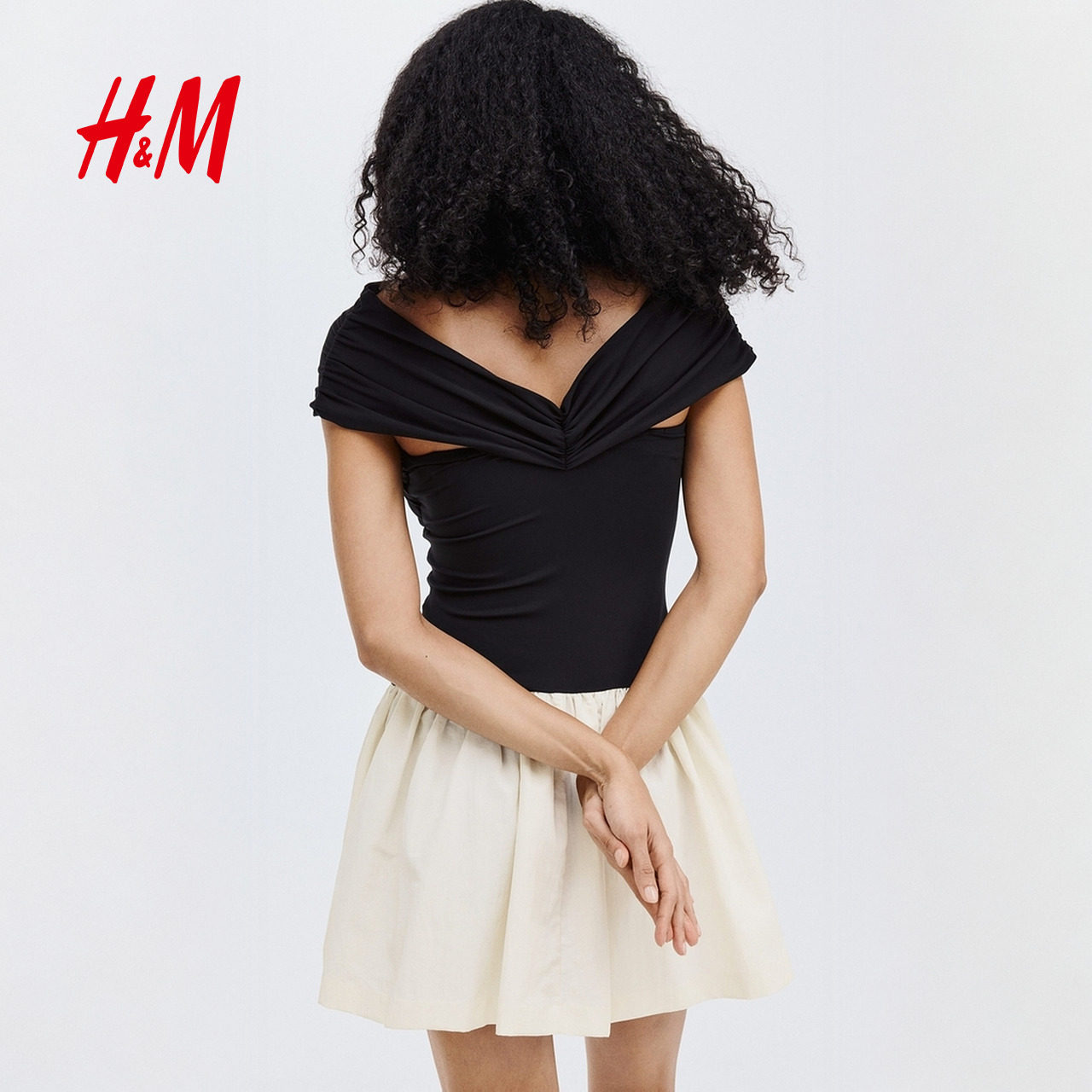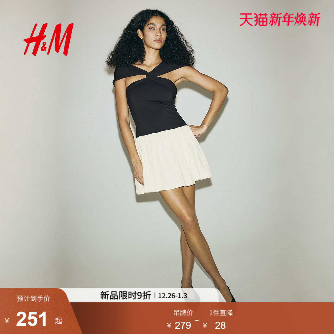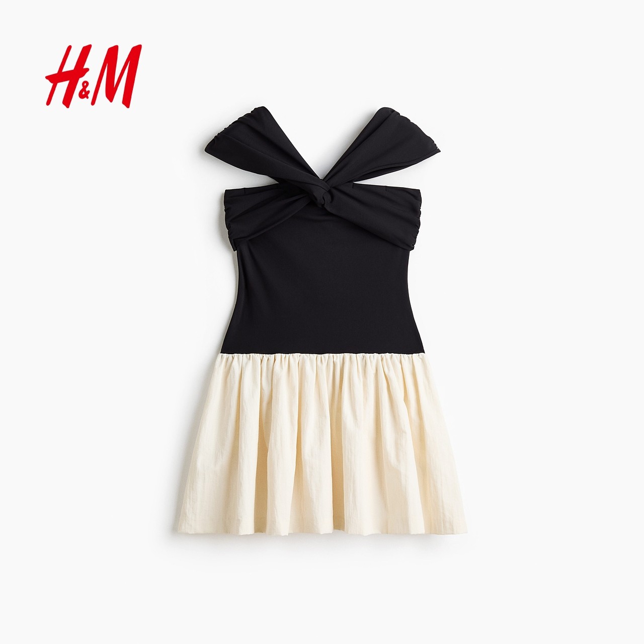 HM女装连衣裙2025冬季新款修身优雅露肩气质礼服A字裙1318565