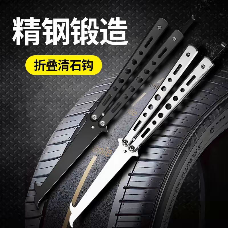汽车轮胎石子清理工具车胎清石钩石器取石器勾子耙子不锈钢折叠