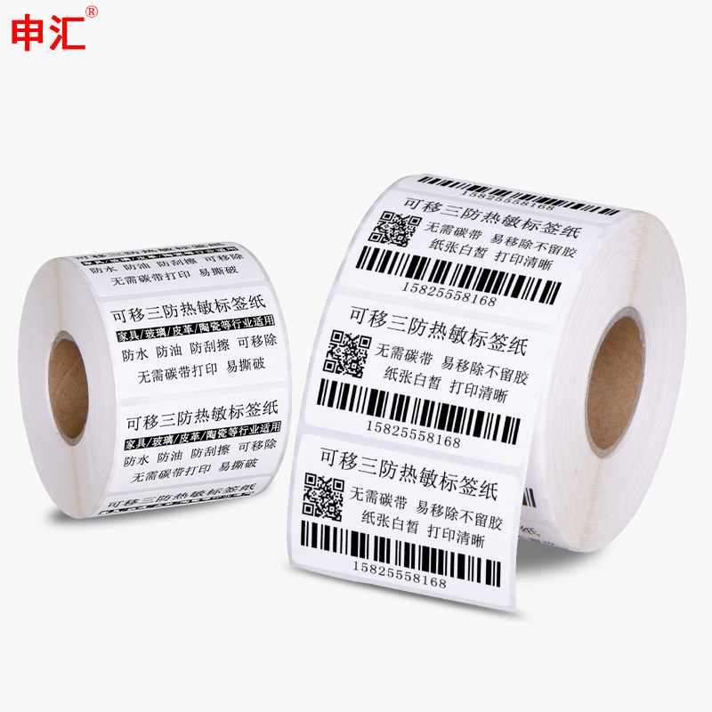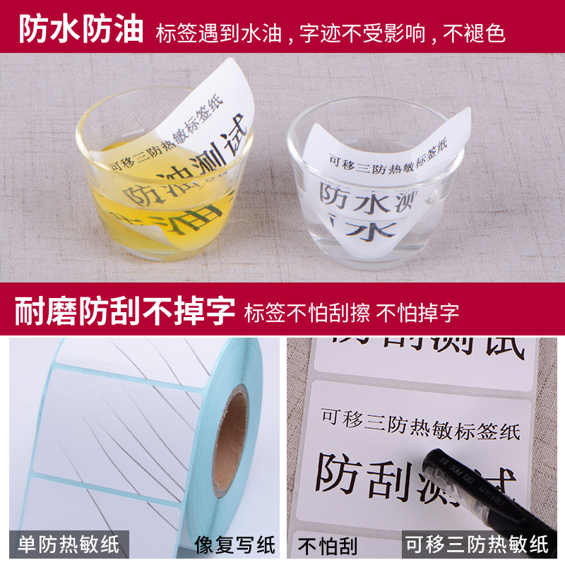 可移三防热敏标签纸20 30 40 50 60 70 80 100不留胶可移除不干胶防水背胶易撕取条码打印家具玻璃板材贴纸