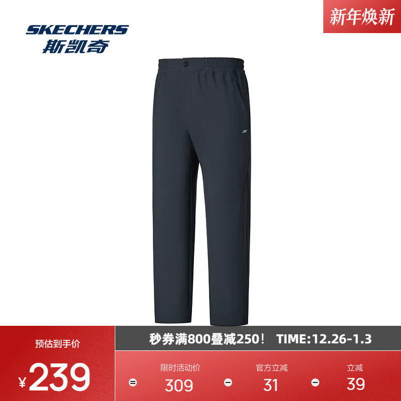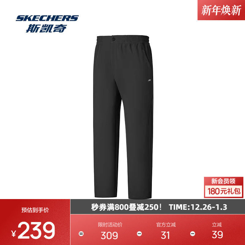 斯凯奇男士梭织长裤2025年秋季新款保暖抗皱防泼水休闲运动裤