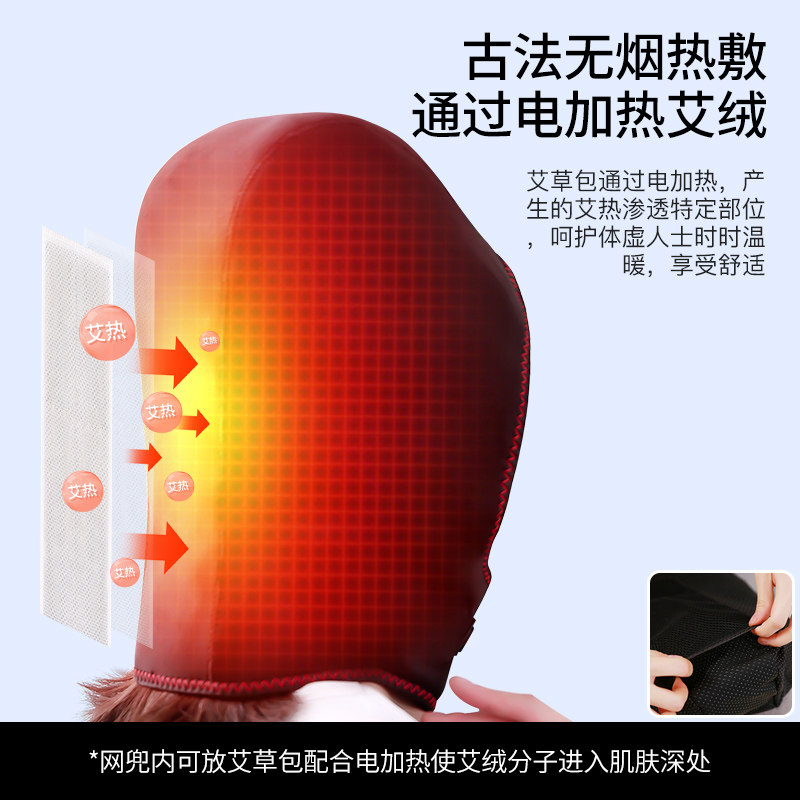 加热艾灸帽子头部热敷帽家用颈椎袋电发热护头颈理疗套头疗仪神器