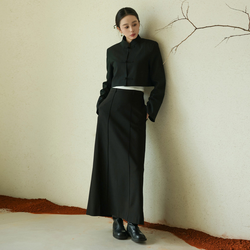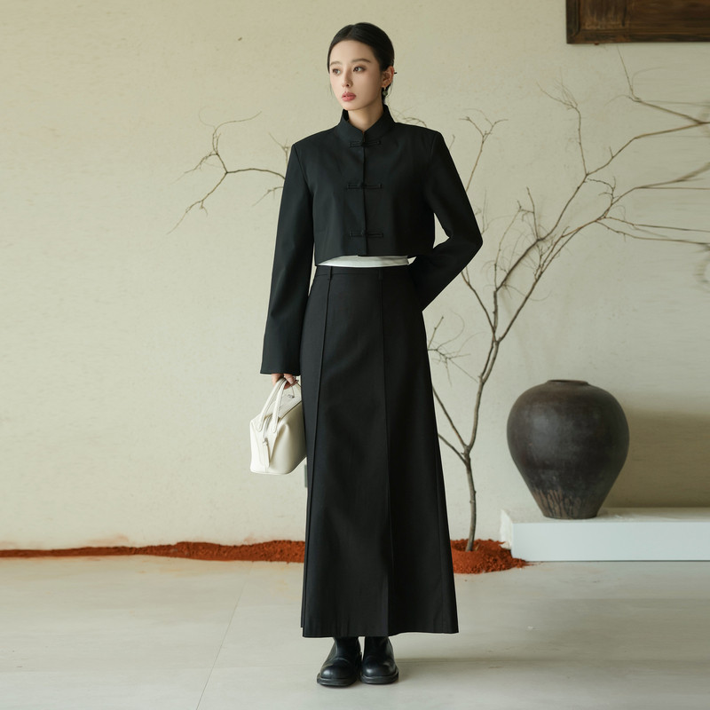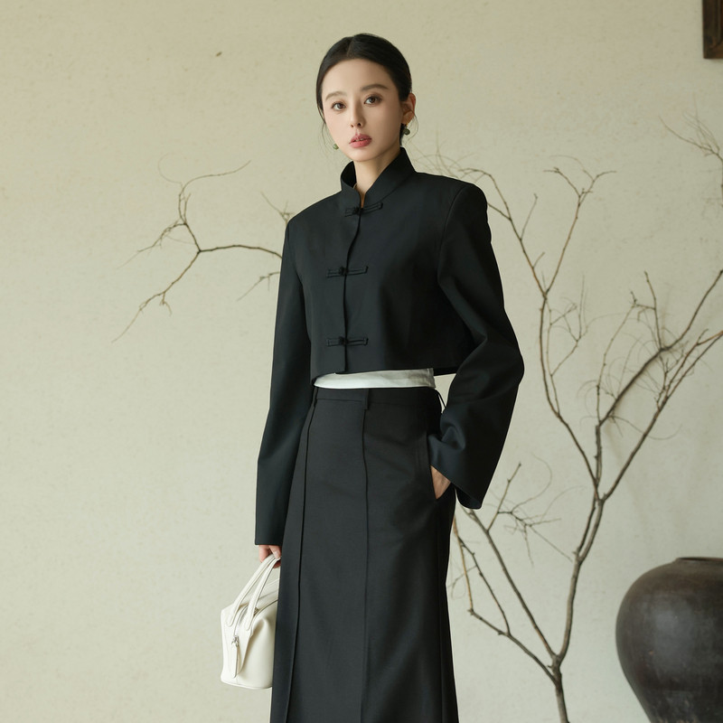 黑标BAIZHUO秋季新款新中式高级感立领盘扣对襟短外套女AZ43WT198