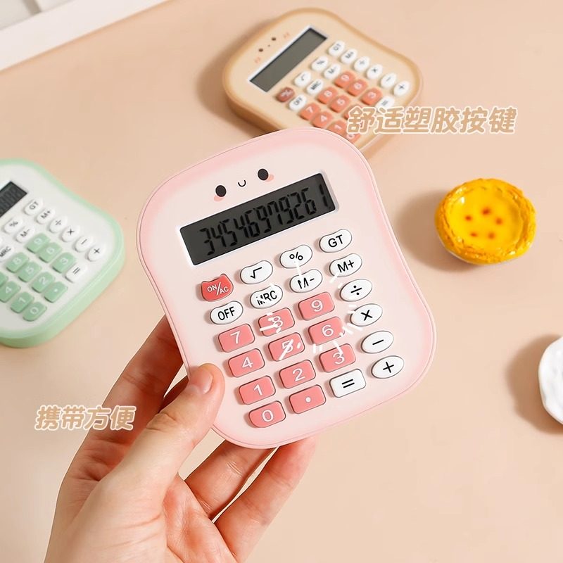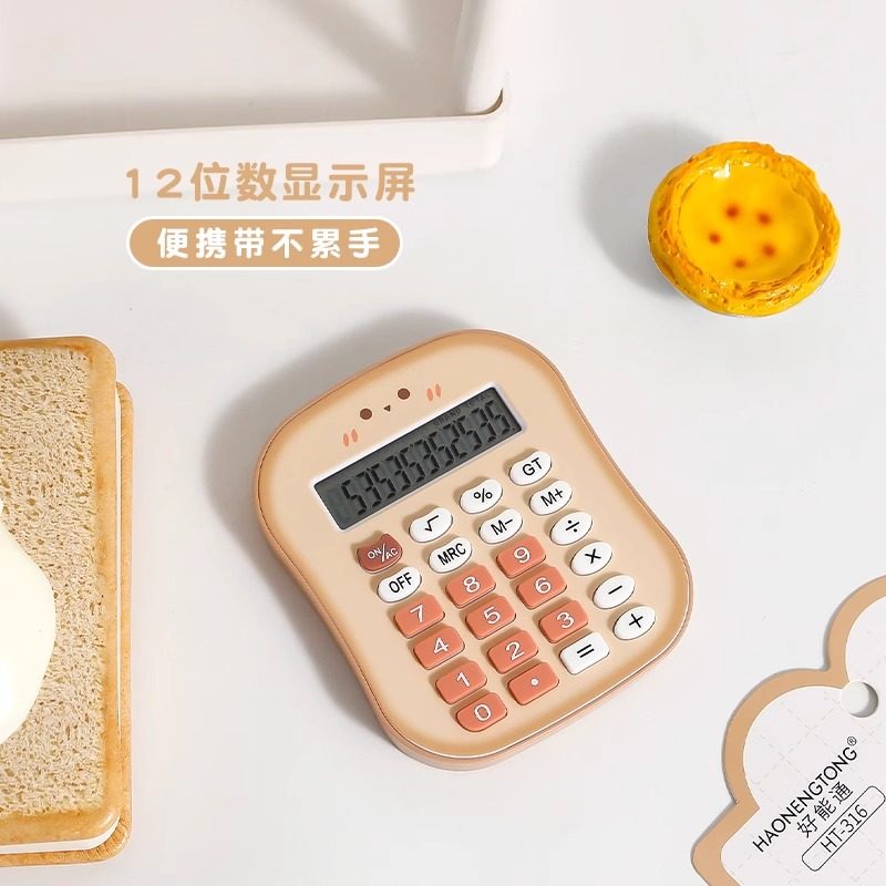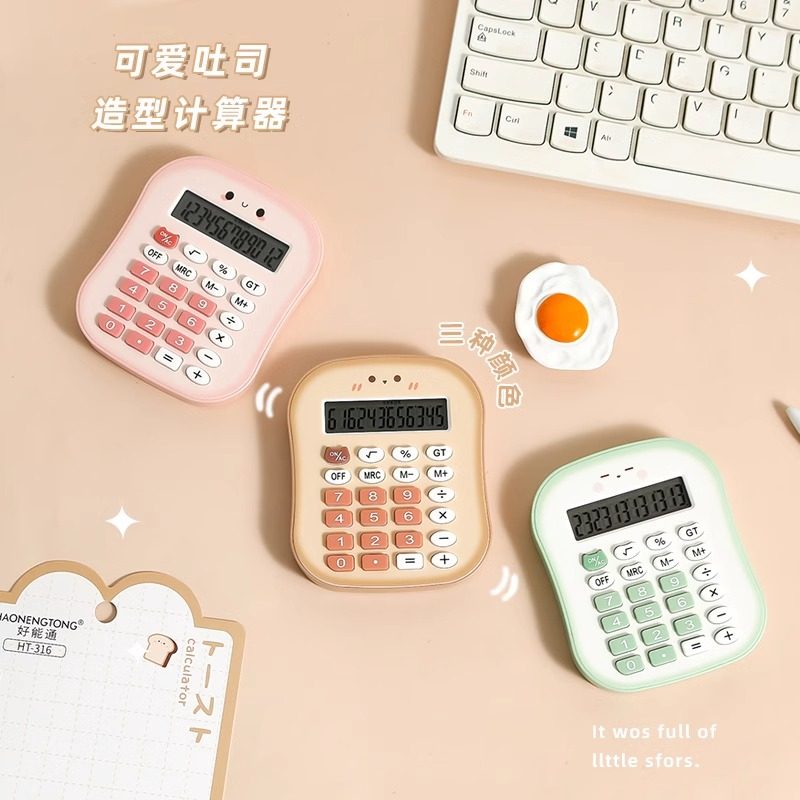 吐司面包便携计算器无声迷你可爱小学生会计专用女神款高颜值少女心计算机考试数学12位数运算机小型多功能