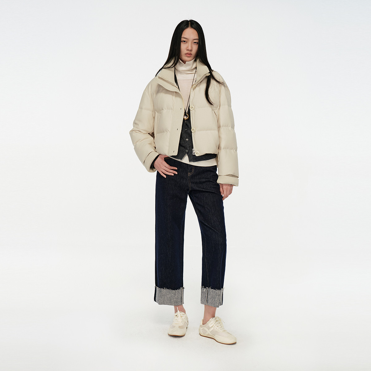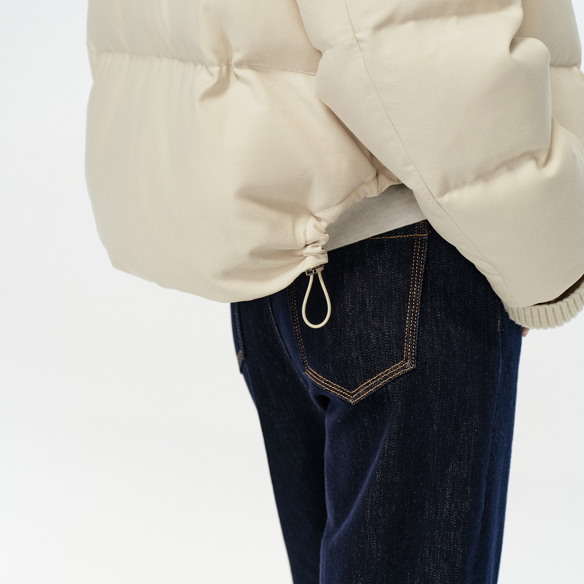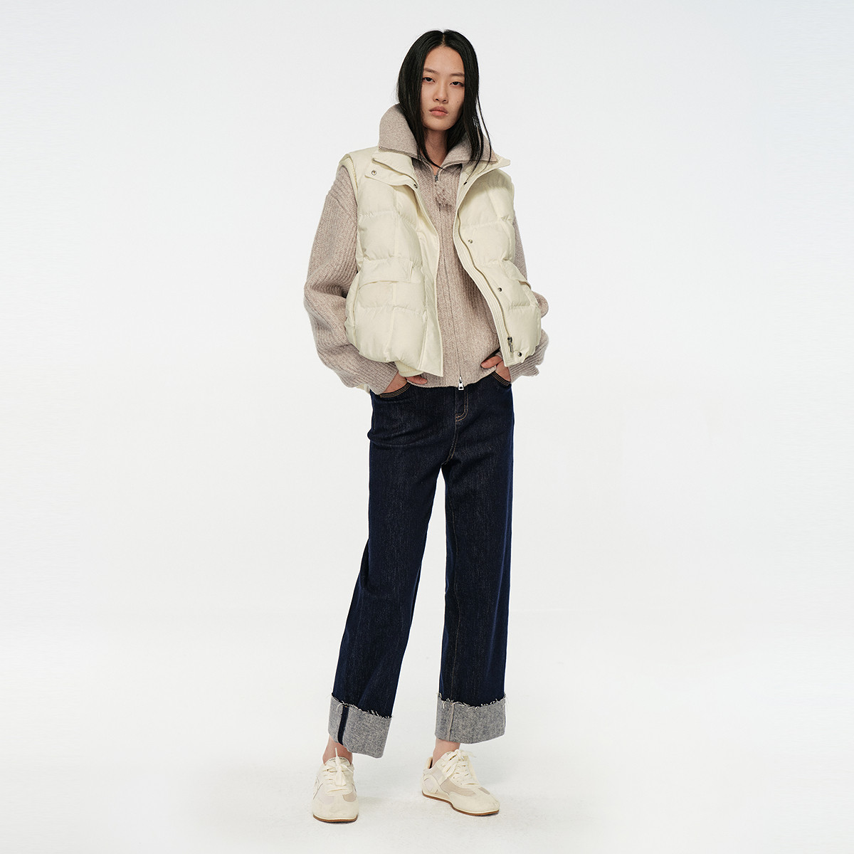 MESUX米岫25冬复古松弛百搭高腰直筒猫须蛋卷翻边牛仔裤MNWSR501