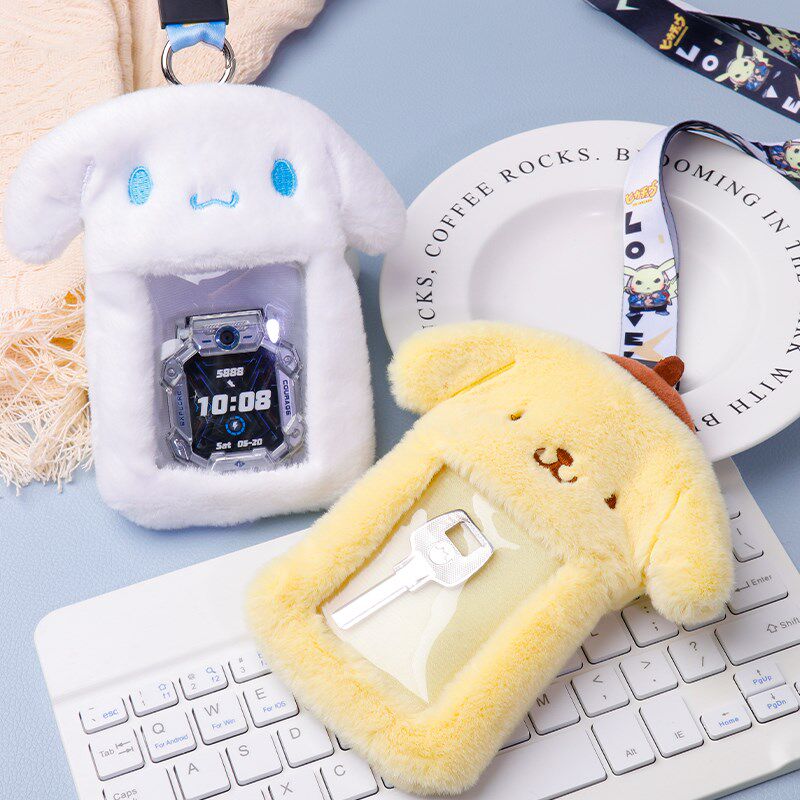 毛绒公仔卡套零钱包书包挂件可爱卡包随身挂脖包电话钥匙收纳小包