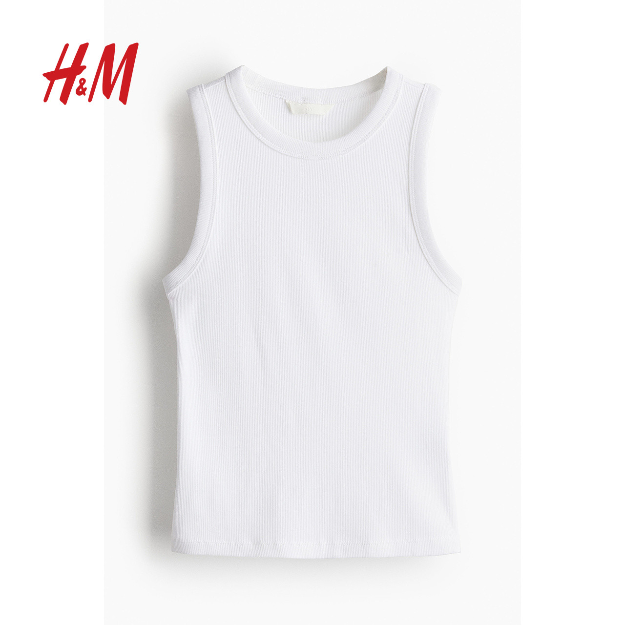 HM女装背心吊带冬季罗纹柔软舒适无袖白色背心1250800