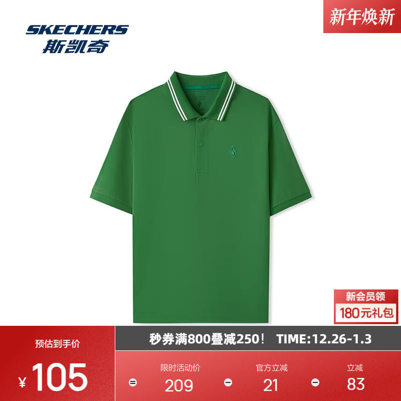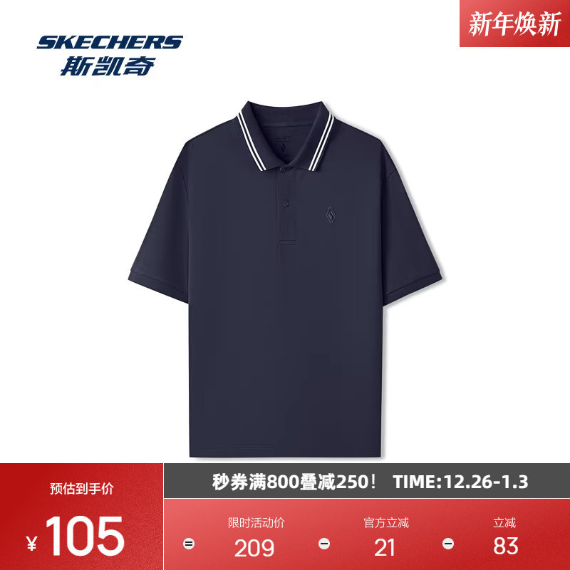 斯凯奇2025新品男女同款运动休闲短袖POLO衫凉感功能撞色领
